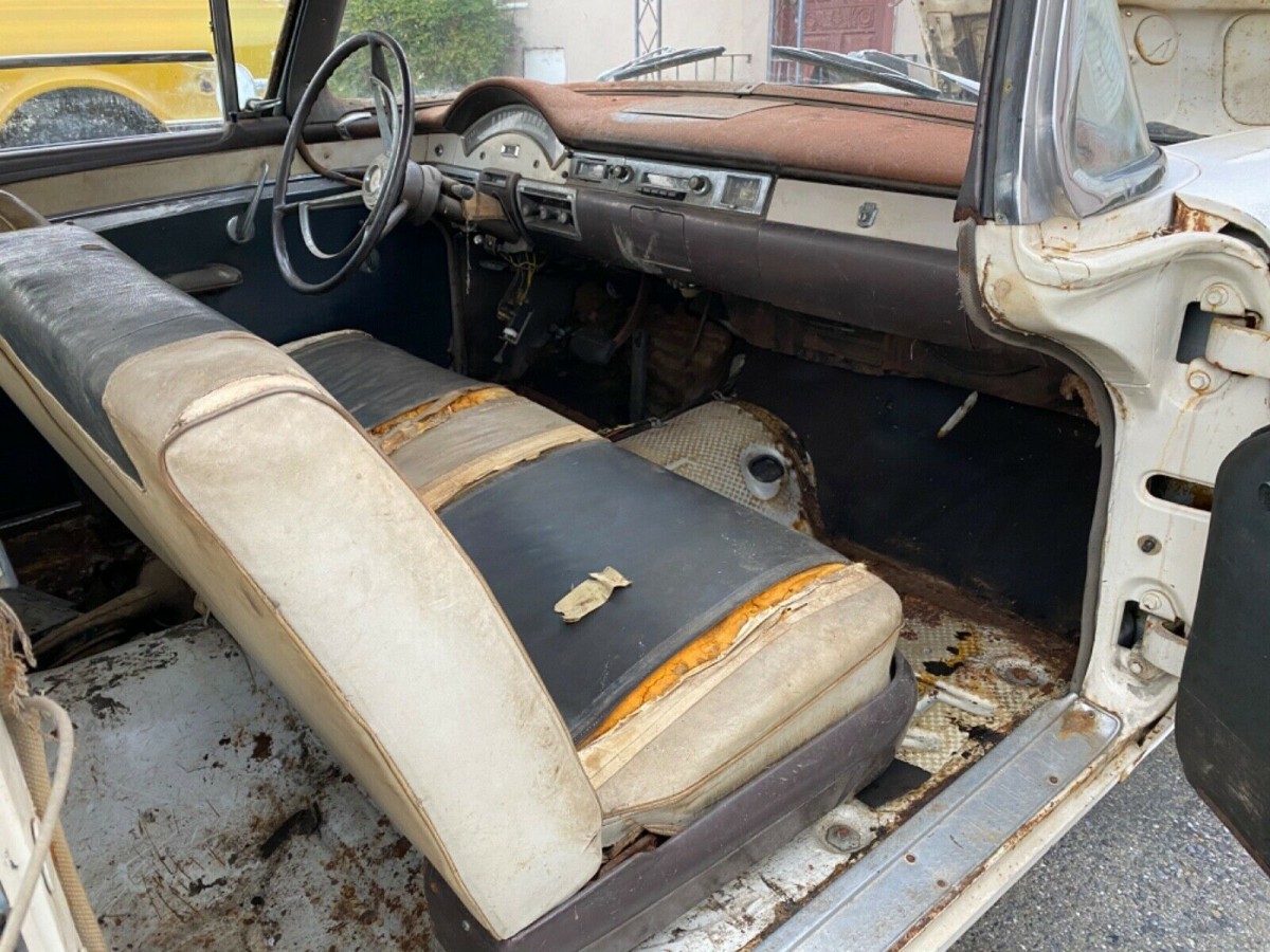 Nice and solid, so a great base from which to star a restoration. These to me, looked best in the many two-tone color combinations Ford offered in `57. Since the interior has to be brought down to bare-bones & redone, and it will obviously need new paint, it would be an opportunity to consider a complete color change. I happen to be extremely fond for Ford’s colonial white so I myself would restore it to this same color. But perhaps a two-tone blue interior upgrade would really set this off!
