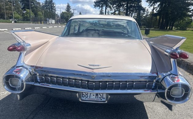 Certain trends in automobile styling have a history of coming and going, with one unforgettable example popular in the fifties being tail fins. These sculptures in the sheet metal usually started on the tops of quarter panels and extended into the rear, with some more fondly remembered than others. If there’s an award to be given for the most outrageously shaped finned body from the period, it’s hard to beat the 1959 Cadillac DeVille, no matter if it’s a coupe or a sedan such as this one here on eBay. This Caddy isn’t free from blemishes, but it’s been well-maintained and seems about as solid as they come. This beauty is in Lakewood, Washington, with the no-reserve auction up to $20,321 at the moment.