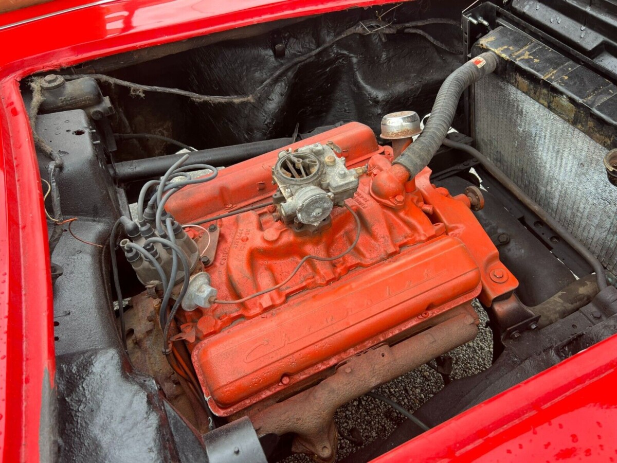 Agree there is still a lot to do on this car but the more I look the more I see that isn’t right. Engine information not shared, spray can paint on it not the Chevy orange, wiring looks shot, hood is warped, and don’t remember ever seeing those wheel covers on a Corvette. I’m sure there is more but my brain doesn’t work that well this early in the morning. Don’t think this one is worth more than the present bid. Note: Chevy Orange on our engines.