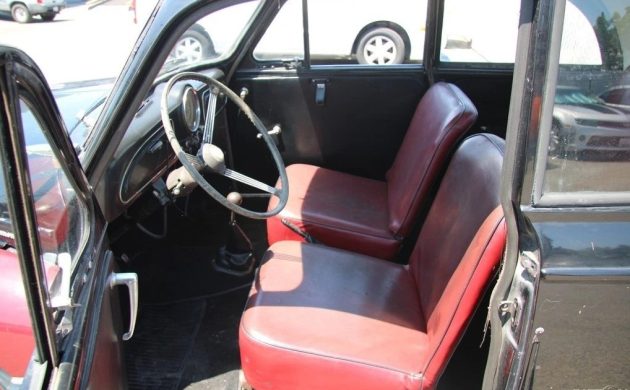 Initially launched with a 918cc flathead four under the hood, the Minor received a significantly updated 948cc OHV powerplant in 1956. This change dramatically improved performance, courtesy of the new engine delivering 37hp and 50 ft/lbs of torque. Those figures might sound modest, but they are considerably better than the 30hp and 40 ft/lbs produced by its predecessor. There was no transmission choice, with very Minor 1000 receiving a four-speed manual. The seller indicates that this Morris doesn’t start or run, and requires work for the engine to roar into life. These A-Series engines are not complex units, so performing a rebuild could be relatively straightforward. However, I have seen plenty of these classics fitted with Nissan/Datsun A-Series engines, and the performance gains provided make that an option worth considering.