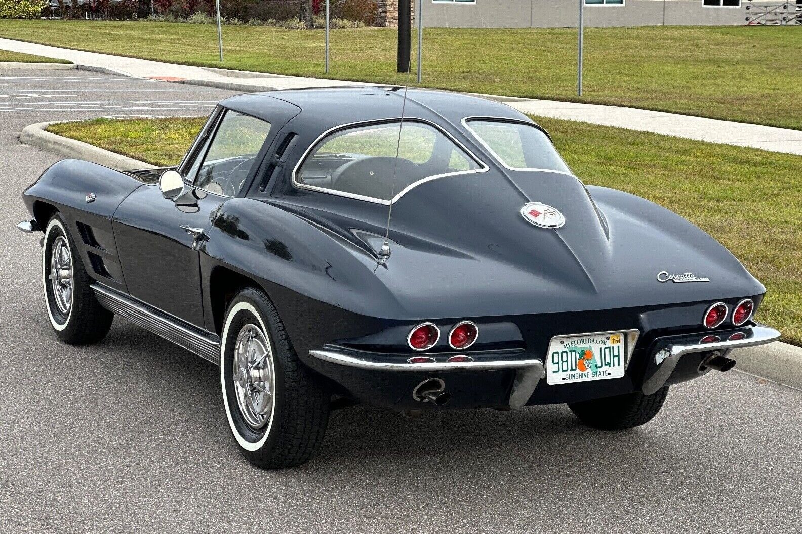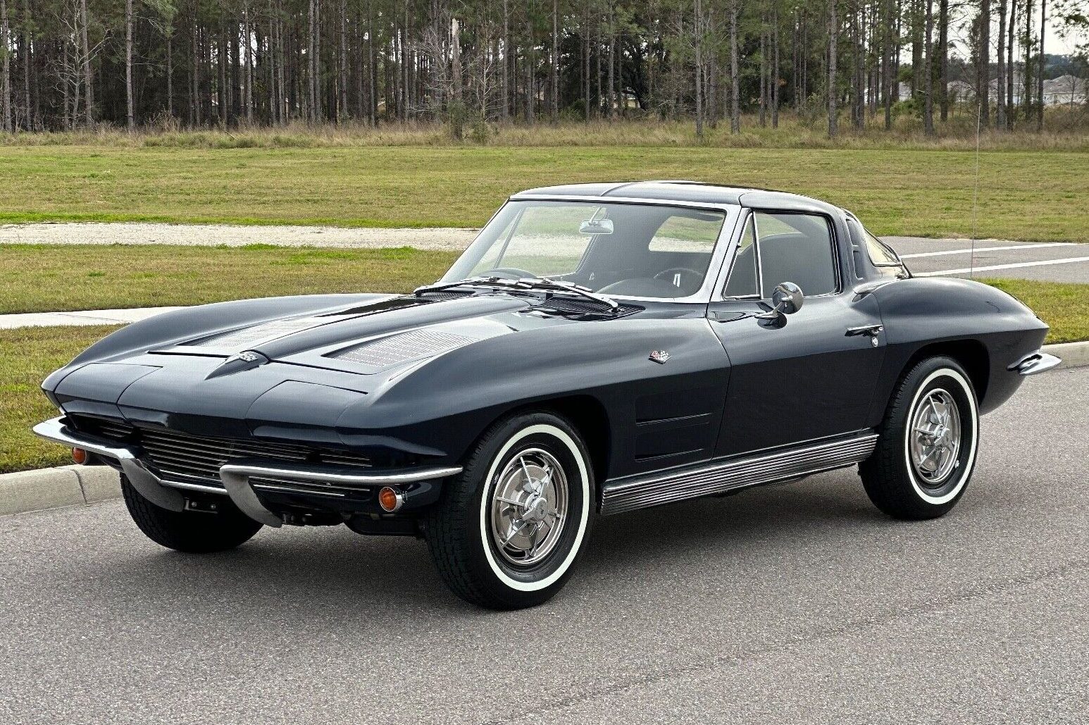 Chevrolet effectively started with a clean sheet of paper when designing the C2 Corvette. Only the major drivetrain components found their way under the skin of a car featuring a new frame and a stunning body. The company took an unusual approach with its new generation. Buyers could previously only order a Corvette in Convertible form, but the C2 Coupe was the first of the latest models to have its body design finalized. One of its distinctive features is the split rear window, which received mixed reviews upon release. However, with negative comments significantly outnumbering the positives, this feature remained available for only one year. The original owner ordered this car in Daytona Blue, with the seller admitting it underwent a frame-off restoration at some point. It presents beautifully for its age. There are no significant flaws or defects, and the paint retains an impressive shine. The fiberglass panels feature their original bonding strips, and there is no evidence of accident damage or other problems. The underside shots confirm the powdercoated frame is spotlessly clean and structurally sound. The chrome is excellent, and the glass is flawless.