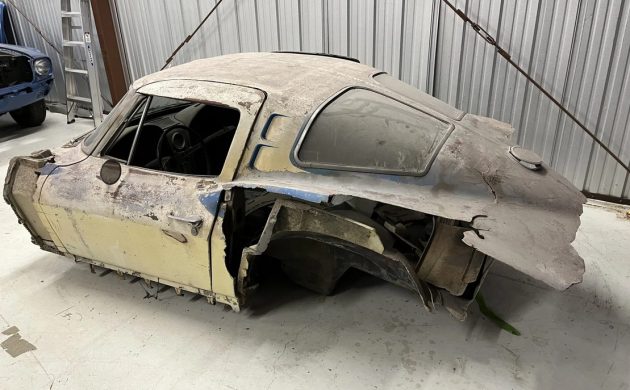 The first owner ordered this Corvette with an interior trimmed in Black vinyl. They also ticked the box beside the AM/FM radio on the Order Form, and that item is intact. The seats aren’t bolted down, but are included. The dash is complete, although it is worth noting that the speedometer and tachometer may have come from a ’65 Corvette. The loss of the frame means that, apart from minor suspension and brake parts, the original V8, four-speed transmission, and most steering components are also gone. We can speculate which version of the 327 originally powered this classic, but it would have delivered at least 250hp and 350 ft/lb of torque. However, with so much of this classic now AWOL, anyone wishing to return the car to active service would be forgiven if they choose to pursue a non-original path to create the Split Window of their dreams.