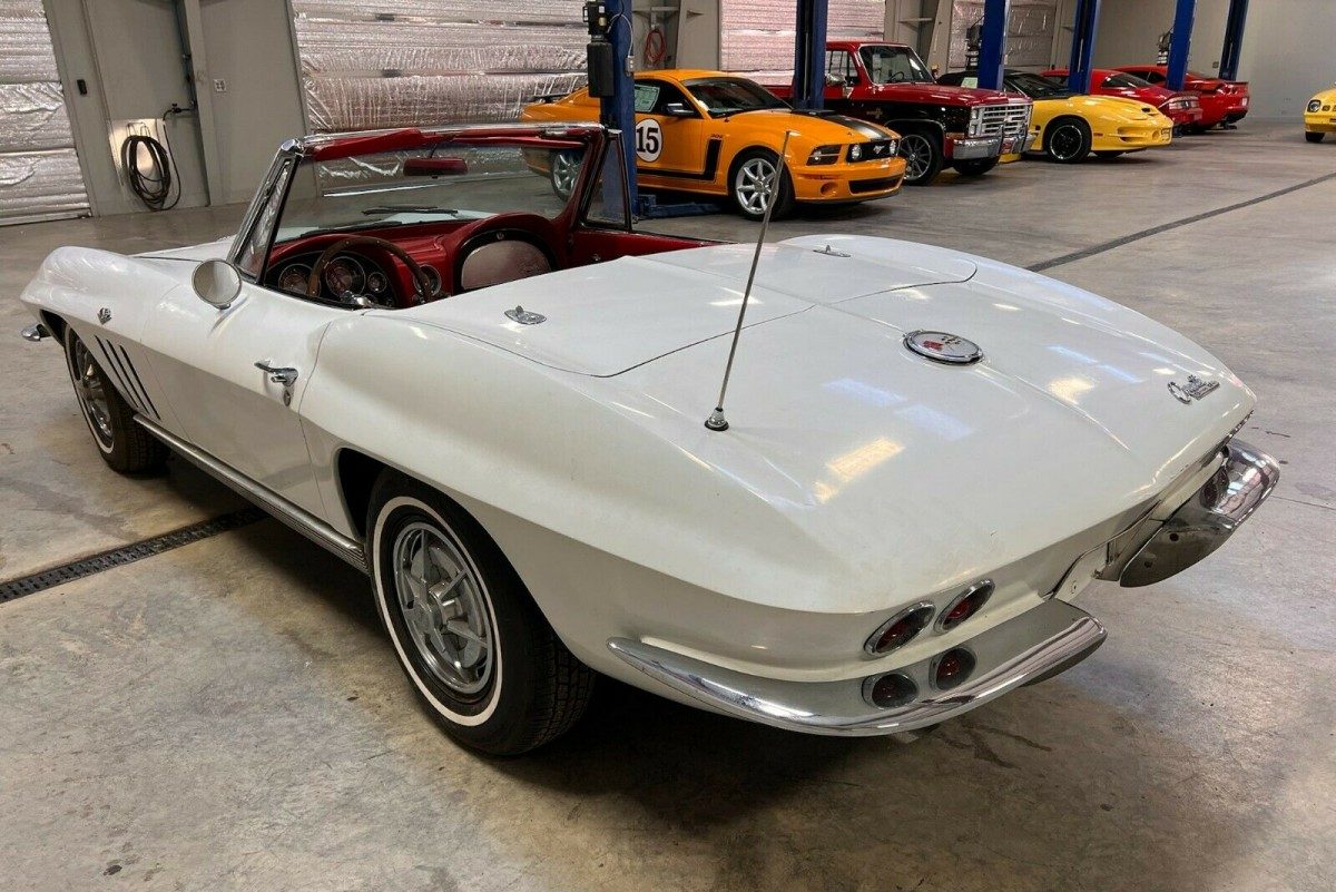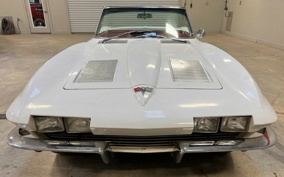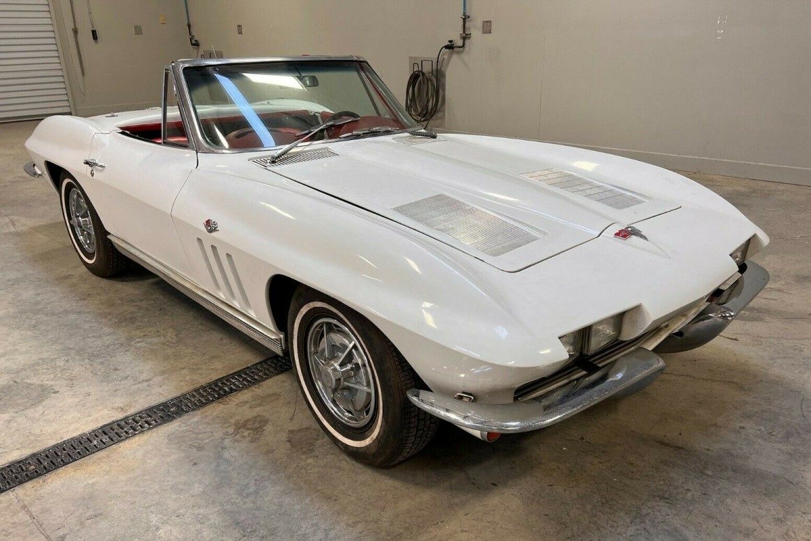 The Trim Tag indicates that this Corvette rolled off the line wearing the Ermine White paint that you see gracing its panels now. It isn’t clear whether the vehicle has received any repaint or restoration work, but the paint still holds a good shine. There are no significant flaws or defects, while the same appears true of the fiberglass. The owner-supplied underside shots reveal some peeling undercoat and surface corrosion but no evidence of structural rust. The chrome looks acceptable for a driver-quality classic, as does the glass. The soft-top is tired, but swapping it would be easy and inexpensive, with replacements available for under $600. Now, I guess we need to address the elephant in the room. Somebody has thought it would be wise to convert this Corvette from its original headlamp configuration to quad rectangular units. Some ideas are better than others, and personally, I rank this a long way down the list. It is out of character with the styling of the rest of this classic and is something that I would change. Reproduction parts to return the front to its original appearance are readily available and affordable, and I would be spending some of my cash on those pieces. Otherwise, the exterior condition and presentation are acceptable for an unrestored survivor.