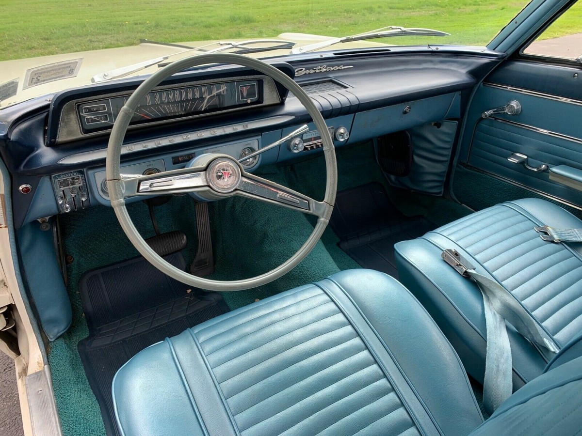 My parents bought one of these new in ’63.as my Mom’s car. It shared driveway space with the ’57 Lincoln for a few years. What a difference in size and appearance over those six years. Hers was dark blue with a white top and was pretty deluxe with the 215 engine, auto transmission, black interior (as I remember) bucket seats and floor shifted console. I was able to drive it for awhile before it was traded for something else. I always thought this was a neat, trim, efficient, design and it may have unconsciously effected my taste in cars since. I thought I wanted it until I saw the price crest $5K (and likely to move higher) knowing that a near-60 year old car can conceal a lot of surprises for the bank account, time, garage space, and energy! Then, there would be the upgrades; 3 point seatbelts, dual circuit disc brakes, LS3, 4L60E trans, 9″ rear, and fresh paint! These were cool then and with effort and funds can be super-cool now since they are so very rare. Or, leave it stock.