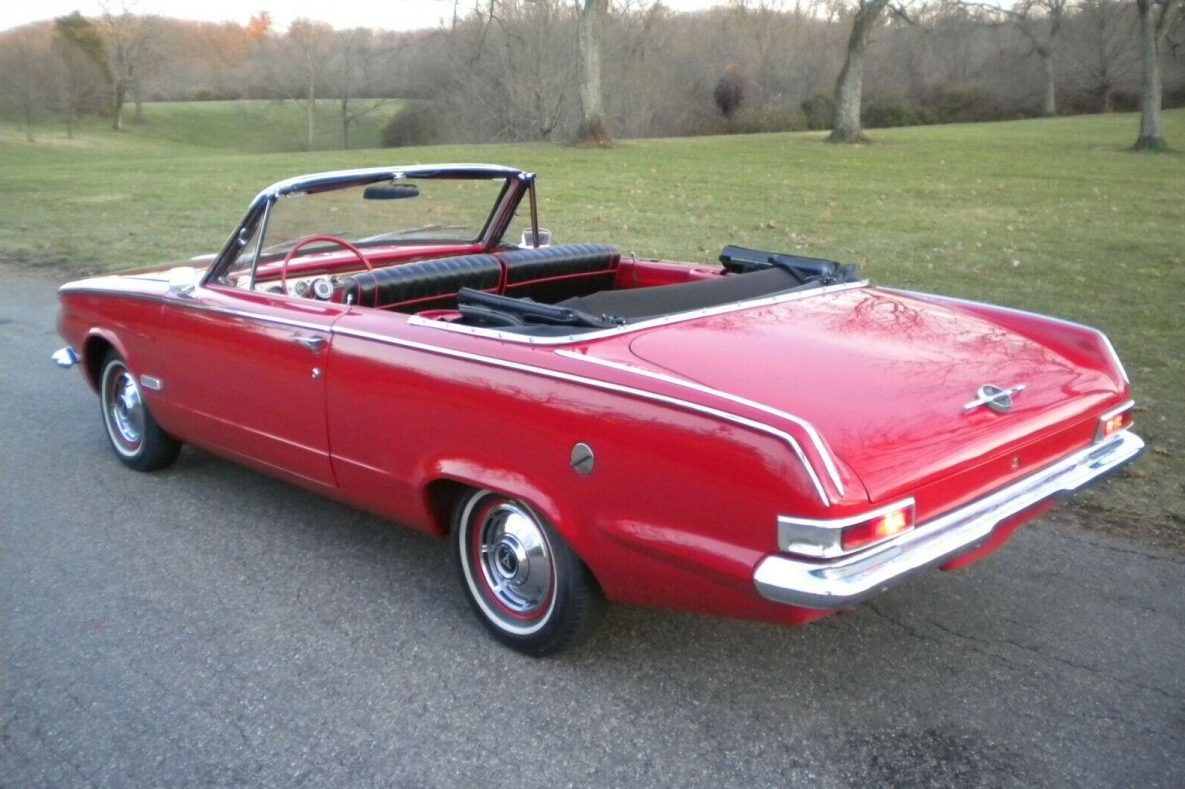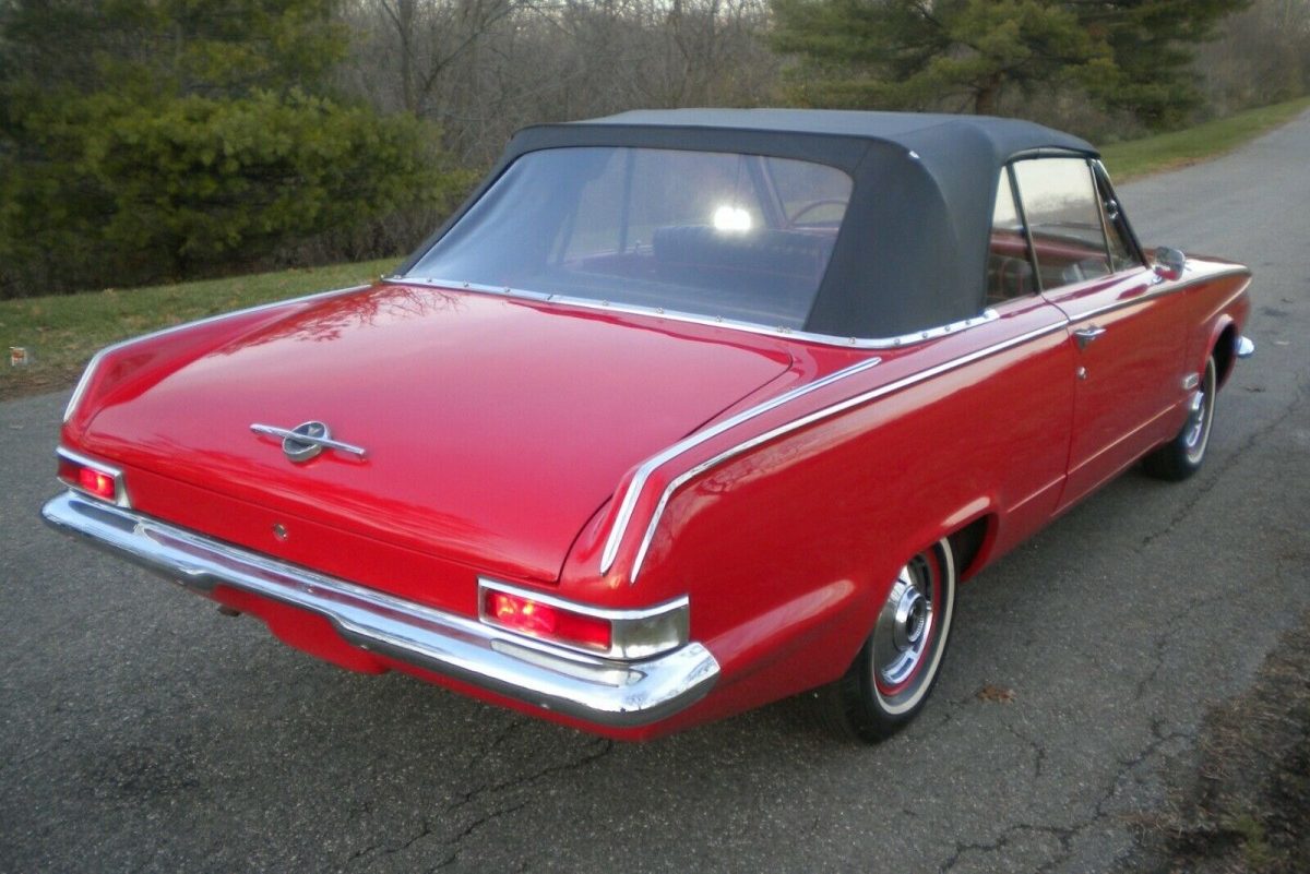 Cute car. My Sister bought a ‘64 Valiant Convertible in about 1967. Also red, but with a white top and two tone red bucket seat interior. Super 225” (said so on the air cleaner) A blast on a sunny Summer day. Unfortunately, sunny days weren’t that common in the Seattle area. Top leaked like a sieve. Mushrooms on the floor of the back seat in fall, and cute little mini ice rinks in the winter. My Brother in Law called it a 90mph engine in a 45mph car. But fun on a sunny day.
