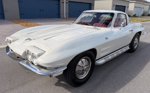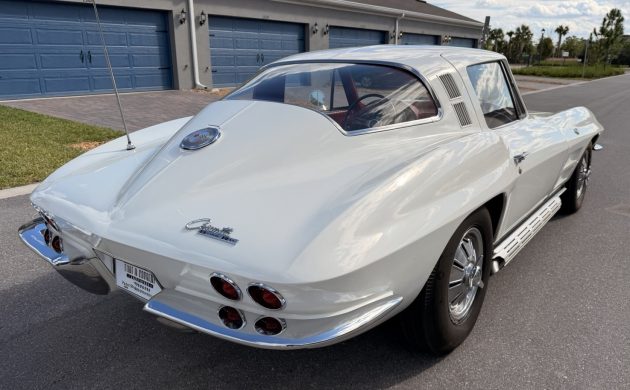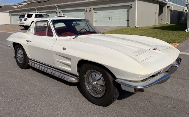 The seller repeatedly uses the word “beautiful” to describe this Corvette, and it is easy to see why. Its Ermine White paint shines impressively, and the fiberglass shows no significant flaws. The seller states that the bonding strips are intact, suggesting that this is a “no hits” body. Perhaps the most encouraging aspect of the listing is the comprehensive image gallery. It traces virtually every aspect of this classic’s restoration, confirming that the frame and birdcage are rock-solid. The trim and glass are spotless, as are the damage-prone wheel covers. The factory side exhaust adds a touch of menace, and the V8 under the hood must sound glorious exhaling through it.