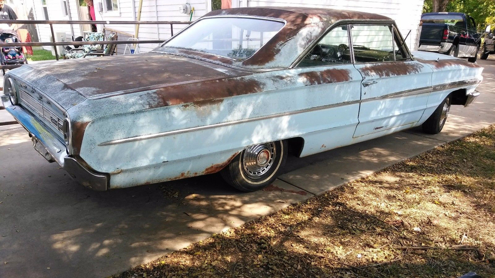 well there is a lot of rust. This is going to be a major project, but easily done. Loved the 64 Fords. I had one of these with the 390 ci engine and 4 speed years ago. It too was baby blue, and had blue bucket seats and a console. I’d love to have this, but am still months from finishing my current project. If this stays under $4000 somebody’s going to get a bargain IMO.