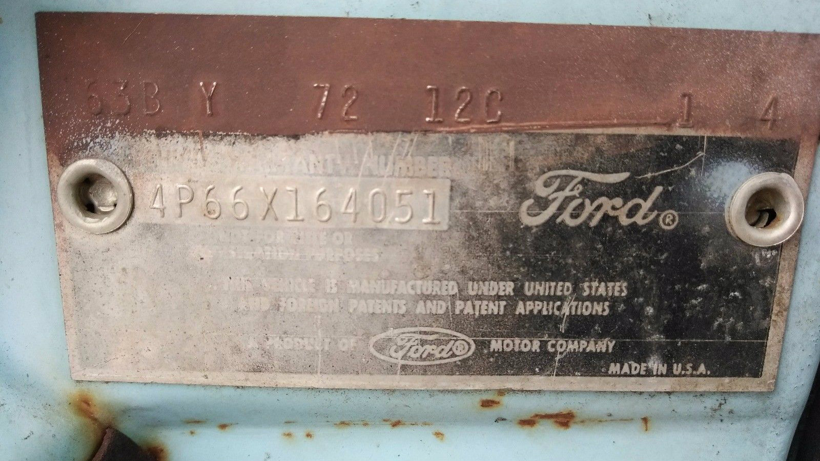 So what can we learn from this VIN tag? Well, according to this helpful site hosted by the SoCal Galaxies Car Club, this car was manufactured in the Twin Cities, was fitted with a 352 cubic inch V8 and a four barrel carburetor, was painted Skylight Blue (it still is) and had Medium Blue and Light Blue Diamond Lustre crushed vinyl interior, with a three-speed manual transmission.