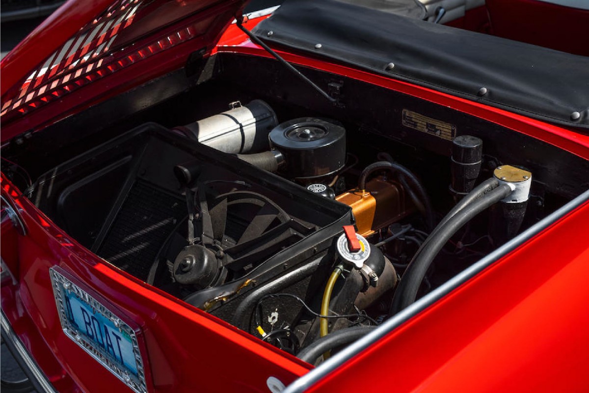 When we examine the interior shots, this Amphicar shows plenty of promise. The red vinyl is slightly stretched on the driver’s side of the seat, but there are no signs of rips, wear, or other problems. The rubber floormat is ill-fitting, so the buyer might need to stretch that into place to improve its appearance. Otherwise, the dash is in good order, and there’s no visible wear on the wheel. In this photo, you can just see that the Amphicar comes equipped with a pair of floor shifts. One is to operate the transmission in the usual fashion, while the other engages the twin propellers on the water. Trippel ensured that these had a reverse setting to improve maneuverability. When an owner wished to leave the water, they could head towards a boat ramp with the propellers engaged and select first gear in the regular transmission. The vehicle would continue moving forward while the props remained submerged. Once the rear wheels bit into Terra Firma, it was simply a matter of motoring away with no fuss or worries…theoretically.