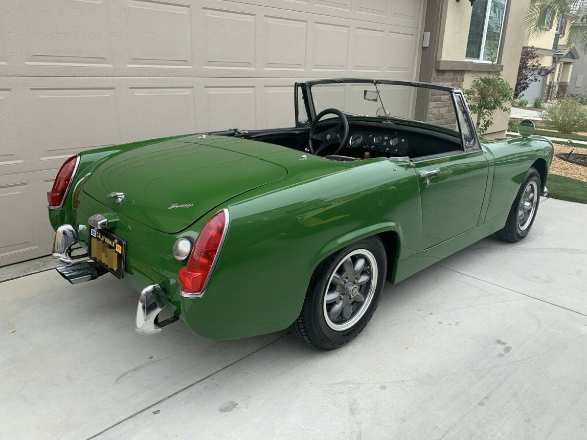 I had a friend right out of HS that had this exact car. “Sprigets” are fun, simple little cars. Another friend had a newer Midget, we had a lot of fun. It’s why I eventually bought my MGB. This one is a great find. Didn’t see too many Sprites, Midgets mostly, but they were around. I’d venture to say, the most bang for your British roadster buck, although, Spitfire owners may disagree. Biggest difference, Sprigets have live rear axles, better motors( I feel) just a simpler car. While I don’t like the single carb, this motor needs dual carbs to sing, one of the downfalls of a Spitfire. I never had a problem with dual SU’s,,3 maybe. And no synchro 1st, that’s a pain, and no O/D available. These really holler at speed, but for puttin’ down a country lane, you simply can’t go wrong. Also, they are small, and many just may not see you. Here’s a newer one, you can see how intimidating it can be. Great find, and BRG to boot!