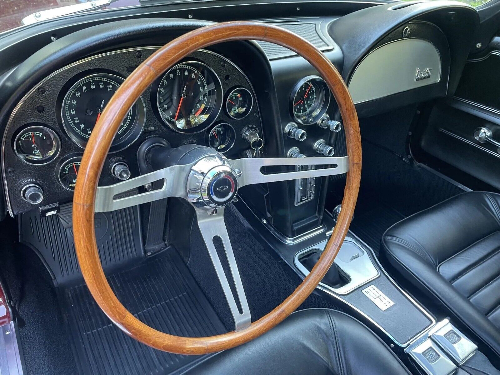 This Corvette’s interior is spotless, from its Black leather seats to the beautiful Teakwood wheel. The lack of wear and deterioration on every surface makes me believe this Coupe was recently restored. Describing the interior of any classic of this age as perfect is risky, but this Corvette wouldn’t look out of place on a showroom floor. The dash is spotless, the gauges feature clear lenses and crisp markings, and there isn’t a scratch or mark anywhere. There are no aftermarket additions, with the Delco pushbutton radio occupying its rightful place in the dash.