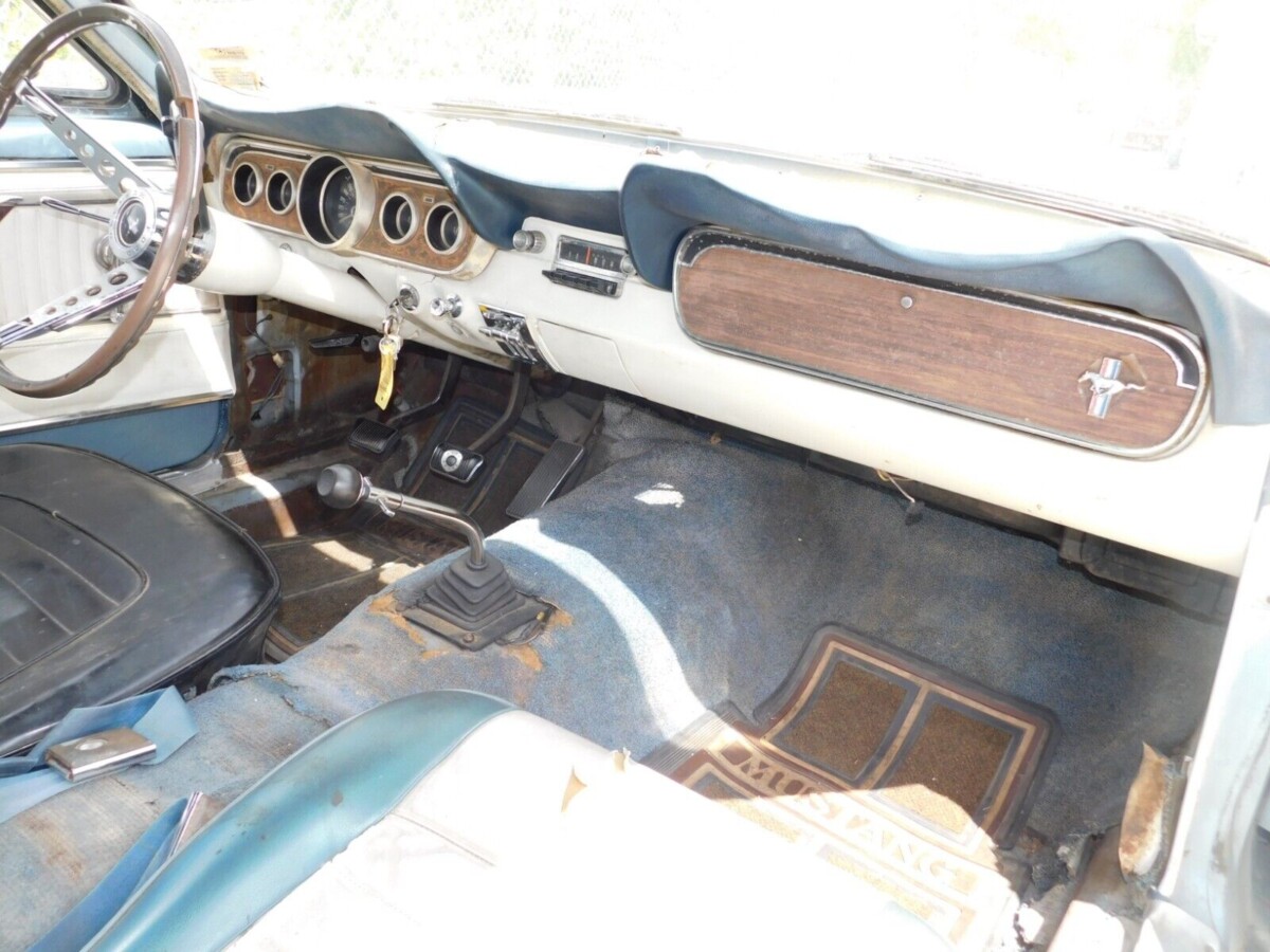 The seller indicates this Mustang has spent its life between Arizona and its current location. That helps explain why its original Arcadian Blue looks slightly baked and why it is also rust-free. That is half the battle with First Generation Mustangs, but it is a war the winning bidder won’t need to wage with this classic. The panels have a few minor marks but nothing demanding major work. The White soft-top fits tightly, and its condition is acceptable for a driver-grade build. The trim and glass look surprisingly good for a classic of this vintage, while the factory chrome wheels are wrapped in new Uniroyal Tiger Paw tires.