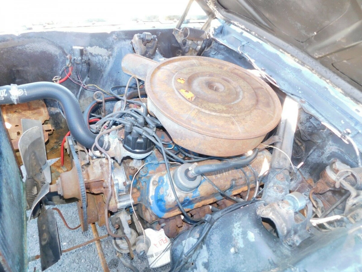 As far as the car itself, it is in fairly good condition. The VIN on the left inner fender doesn’t match the door tag (6F07C202438) but the door tag seems correct for the car and reads: 65A U 27 18M 62 6 6. The front driver’s floor pan is rusted through in one spot but can be easily patched. The floor pan plugs were removed by us (LOL) because we had started to take out the seats and carpet. But when we found the driver’s license, we put the seats back in and didn’t bother with the drain plugs. Didn’t appear to be a flood victim though. Not shown in the pictures is also the punched out ignition switch to go along with the punched out trunk lock. Interestingly, a complete under dash A/C system was included with the sale but wasn’t installed and doesn’t seem to be listed in the current sale.