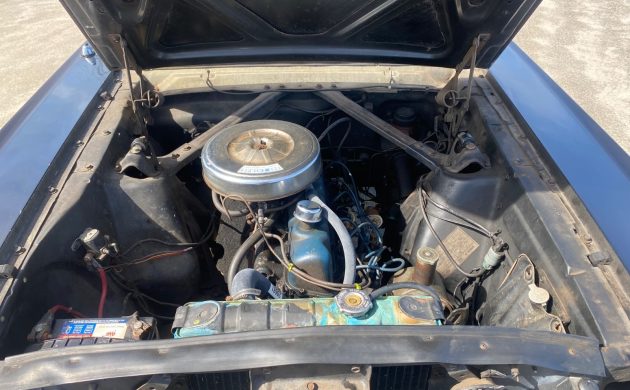 Trimmed in Black vinyl, this Mustang’s interior remains serviceable. The front seatcovers exhibit deterioration, and the carpet has slightly faded in some areas, but the remaining vinyl looks surprisingly good. The dash is clean, housing a factory AM radio. A close inspection will undoubtedly reveal other flaws, but a new set of front seatcovers and (possibly) a carpet set would lift the appearance considerably without costing a fortune. Ford offered two versions of the Sprint 200 Package, depending on the buyer’s transmission choice. This car features the more expensive “Sprint B” version, which included a three-speed automatic transmission. It added $163.40 to the Mustang’s sticker price, and it is when you discover what buyers received for their money that you can appreciate why it proved so popular. Apart from the exterior stripes and the wire wheel covers, a full-length console added a luxurious touch to the interior. As standalone features, the wheel covers would have cost $58.24, while the console would have cost $50.41. The “Sprint B” doesn’t sound like great value for money when taken at face value, but when you consider that the automatic transmission was $175.90, it starts to make perfect sense.