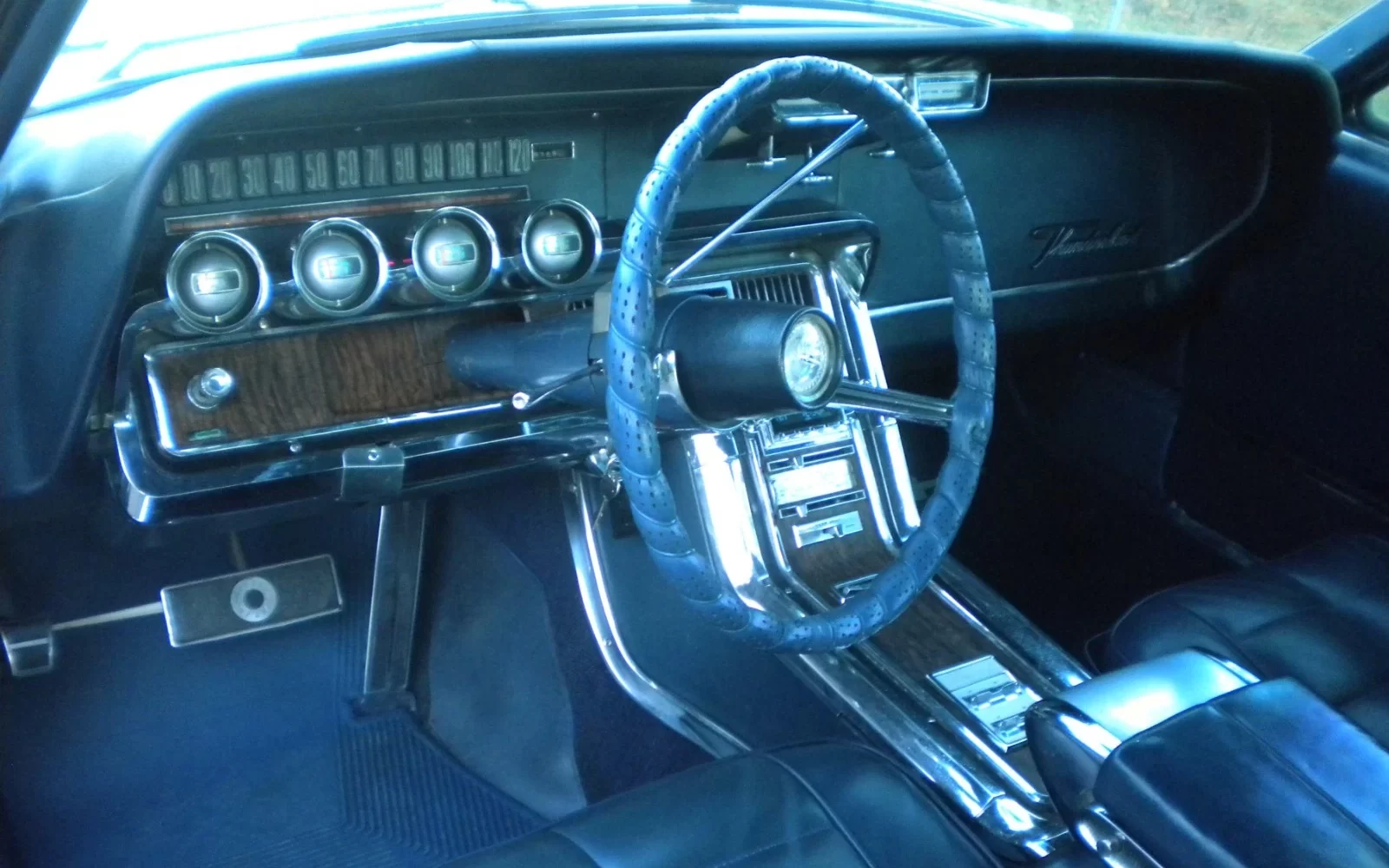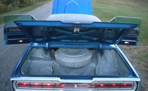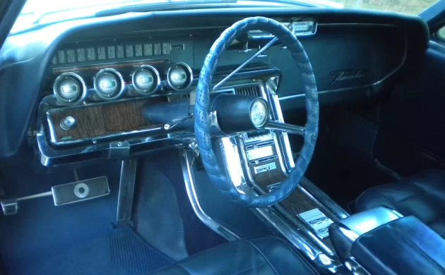 Despite the four-seat T-Bird’s show car looks, the interior has always been where the personal luxury coupe shone brightest. The 1966 model was at the end of its traditional three-year styling cycle, but the interior still ranks among the best not only in Thunderbird history, but also in the history of the Big Three. The seller doesn’t mention which options this car has, but it has (at the very least) power windows, which included power vent windows on the Town Landau and were a $103.20 option. The Swing-Away steering wheel was standard.