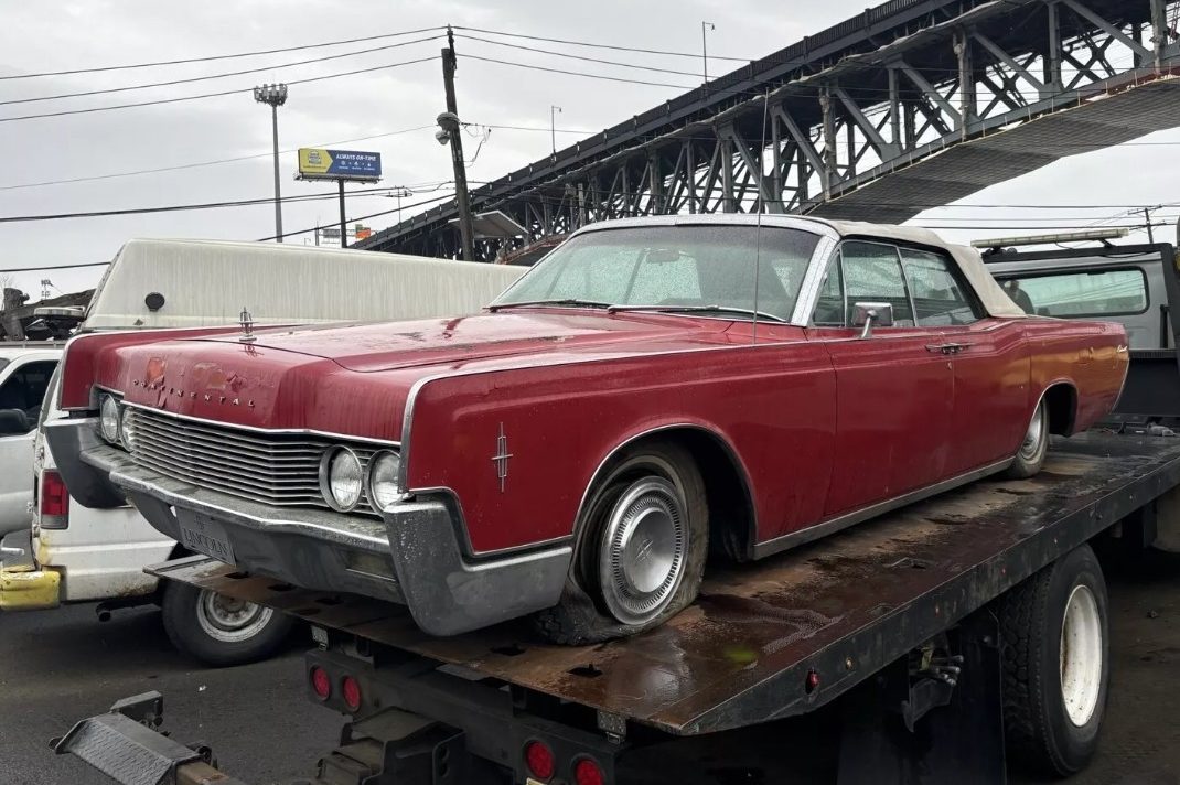 When I was 17, driving my ’62 Lincoln convertible to school, I got a after school job at a bakery and across the street from them was a small used car lot. You know, this was 1970, maybe 15/20 used cars. He had a 1967 Lincoln Continental convertible in turquoise of all colors. White top white interior and I so wanted that car. It seemed a reasonable price to me, don’t remember the actual price but it couldn’t have been more than $1200 which I couldn’t do on a part time job. Never forgot that car.