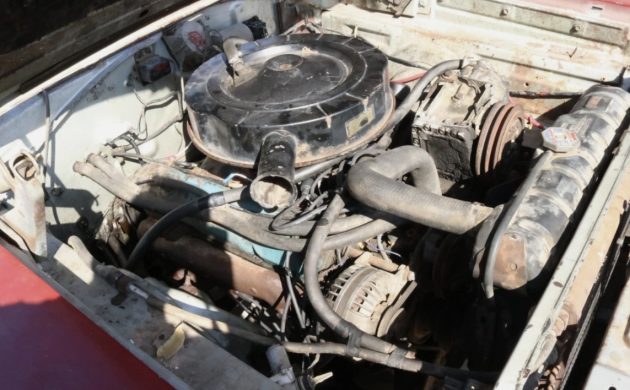 Despite its initial appeal as a practical but sporty alternative for families, the Coronet rapidly acquired the aura of a muscle car, with ever larger V8 engines available. These included the optional 426 cu. in. Hemi, installed in a very few examples. In 1967, the R/T was introduced, inheriting the performance mantle. This ’67 is powered by a 383 cu. in. V8, good for 270 hp with the factory-supplied two-barrel. The transmission is a three-speed automatic. The seller has performed considerable mechanical work in an attempt to resurrect the car, including a new fuel pump, starter, brakes, and tune-up components. The carburetor was also rebuilt and the wheels and tires are new. After all this, the car still won’t run, apparently because the fuel system is clotted with old gas.