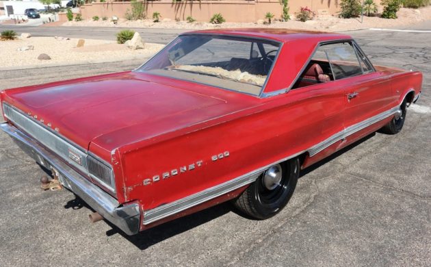 This car left the factory painted silver; the old paint is still in evidence in the trunk and engine bay. The seller notes that a few pieces of exterior trim are missing, and the lower passenger’s rocker panel needs repair or replacement. The rear bumper is bent, and what’s with the trailer hitch! Around the Coronet ecosystem, asking prices are all over the lot. Ordinary Coronets have seen engine swaps for more power; R/Ts have been restored to the nines. These cars sell for tens of thousands. Base-spec cars are cheaper, of course. How would you finish out this project?