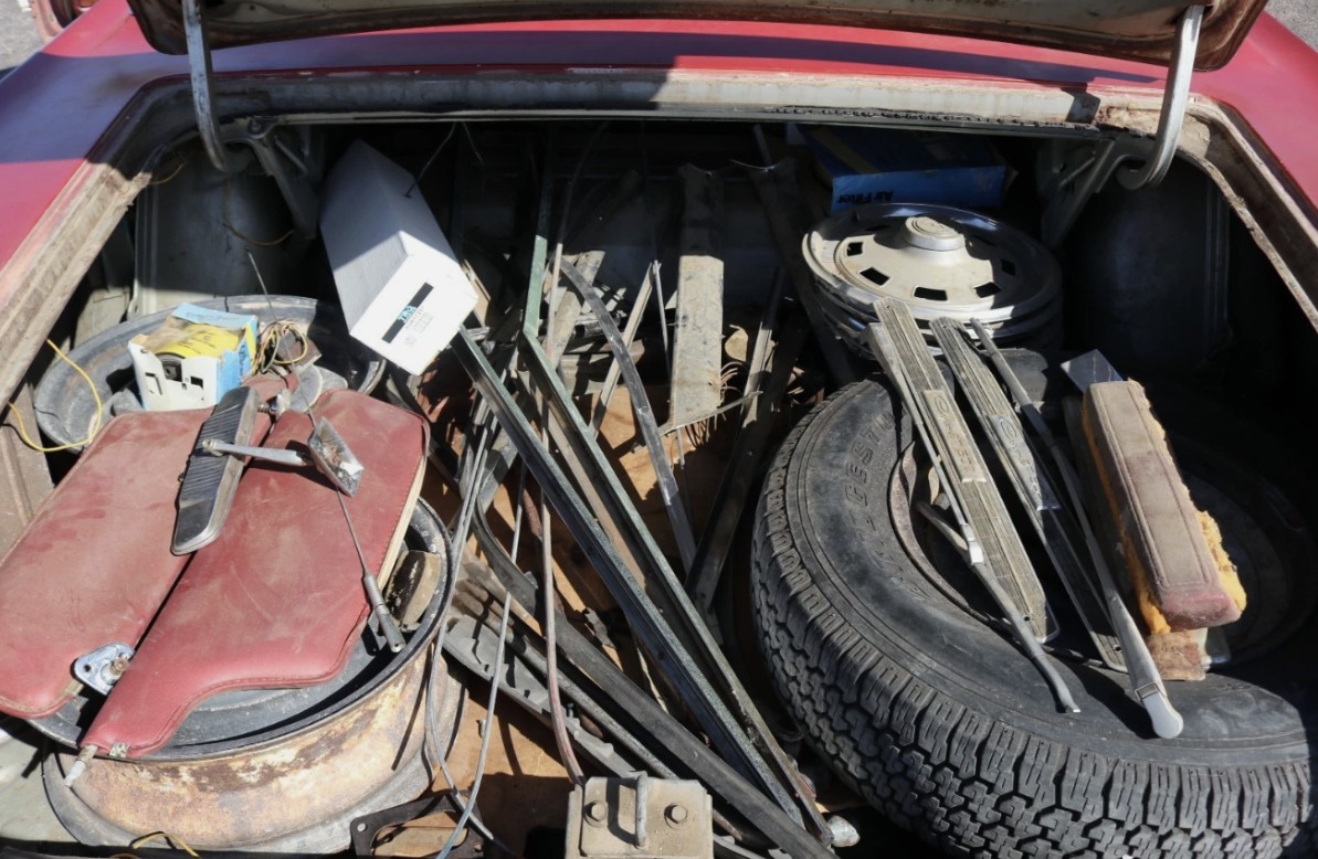 This car left the factory painted silver; the old paint is still in evidence in the trunk and engine bay. The seller notes that a few pieces of exterior trim are missing, and the lower passenger’s rocker panel needs repair or replacement. The rear bumper is bent, and what’s with the trailer hitch! Around the Coronet ecosystem, asking prices are all over the lot. Ordinary Coronets have seen engine swaps for more power; R/Ts have been restored to the nines. These cars sell for tens of thousands. Base-spec cars are cheaper, of course. How would you finish out this project?