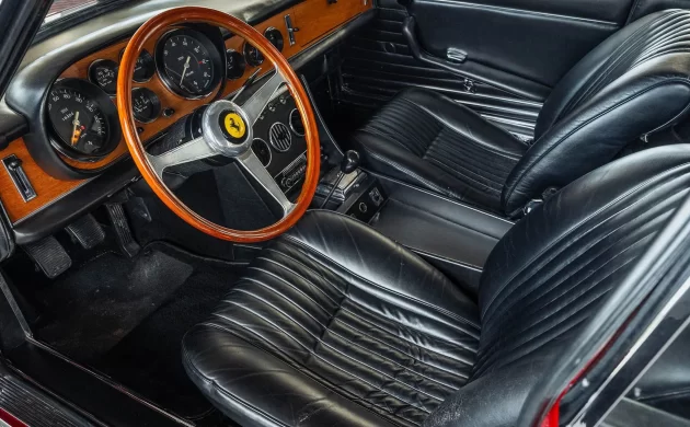 The 330 GTC left the factory wearing Beige Scuro upholstery, but was later changed to black in a subsequent restoration. This works against the car, slightly, as much of it remains original otherwise. Still, there’s no denying the enormous appeal of sitting in a cockpit like this one. The GTC was well equipped, fitted with power windows, the stunning teak dashboard, leather seats, and three-spoke, wood-rimmed steering wheel. The retrim in black happened way back in 1974, so there’s likely a vocal contingent that would argue it’s best to leave the interior alone at this point given how long the black leather, carpets, and door panels have been in place.