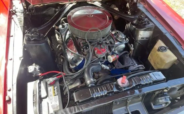 If this Mustang has a weak point, its interior might score that dubious honor. It isn’t horrendous, and most readers will consider it acceptable for a driver-grade classic. There are no gaping holes in the Red vinyl trim or the headliner, and the matching carpet is in good condition. However, the dash fascia shows wear, the pad is warped, and the interior no longer features the factory air conditioning or AM radio as specified in the Marti Report. Addressing those shortcomings would be possible because the required parts are readily available and affordable.