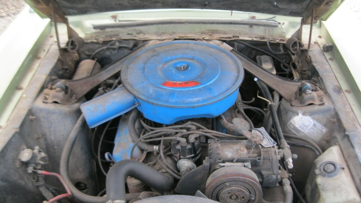 This Cougar’s interior is like the rest of the car; It is complete but crying out for love. The Light Ivy Gold upholstered surfaces show wear and deterioration, with the front seats sporting aftermarket Black covers. The carpet is equally tired, as are the dash and console. If I were the winning bidder, I would deep clean everything before compiling a shopping list. Some parts might bounce back well from such treatment, reducing the potential restoration costs. This Cougar retains its factory air conditioning and AM radio for those favoring luxury.