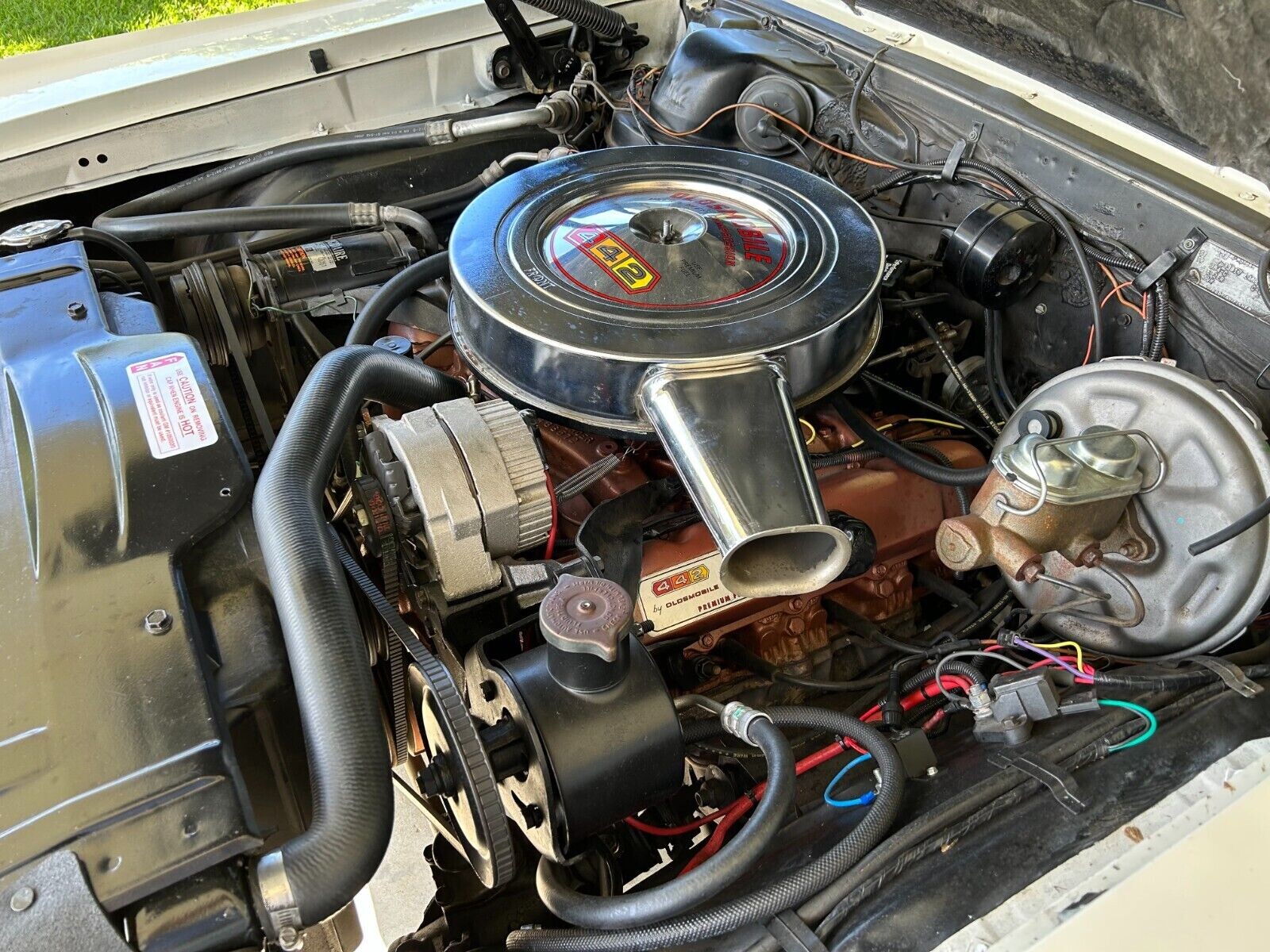 We’ve seen a few classics recently with White interior trim, and this 442 adds to the list. Its presentation is good, although the seller notes a split on the front seat driver’s side. It won’t be an issue because a new genuine cover is included for the buyer to install. The remaining upholstered surfaces, including the spotless back seat, are clean and free from problems. I can’t spot any dash, pad, or carpet issues. The only visible aftermarket addition is a collection of gauges under the dash, but removing these would be easy for those preferring an unmolested appearance. Luxury appointments include ice-cold air conditioning and an AM/FM factory radio. The seller confirms everything works as it should, including the A/C, gauges, and heater.