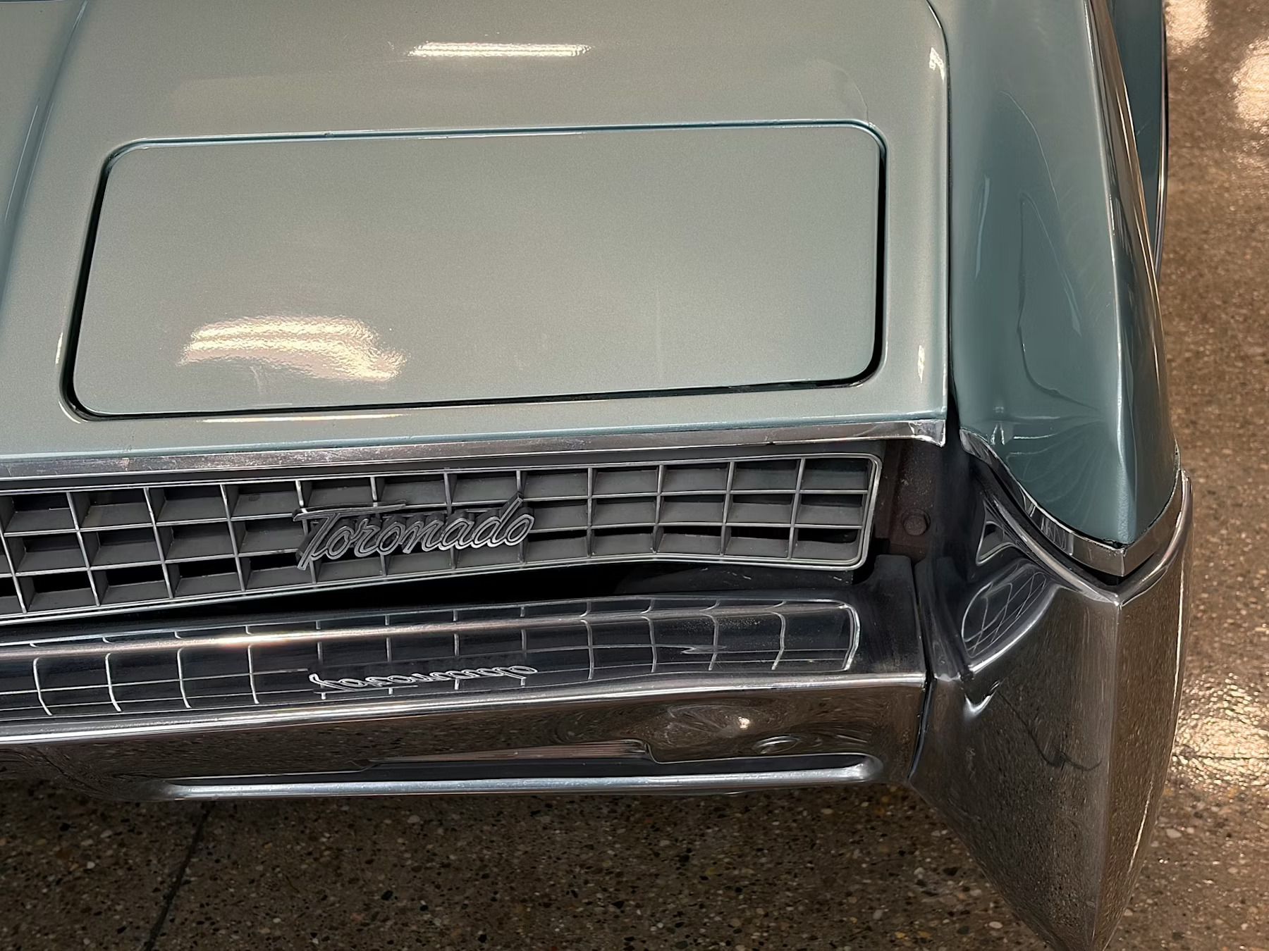 There are some flaws to note, the most concerning being a dinged bumper and grille, not the easiest parts to source. In this picture, you can see the pop-up headlamps, which are more smoothly integrated into the nose than they were in 1966 (which is a reason that some people prefer the 1967 model). Unfortunately, those pop-up headlamps aren’t working correctly, a common Toronado malady. The power rear-quarter windows are also down for the count.