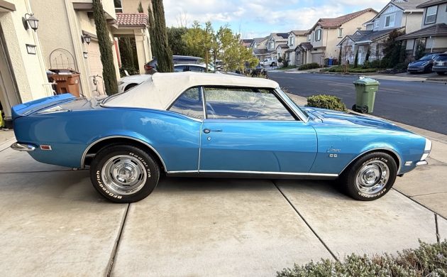 After its 1967 introduction, Chevrolet performed some fairly significant styling upgrades to the Camaro for the 1968 model year. It included adding side marker lights on the front fenders and the rear quarter panels. However, the most obvious was the elimination of the front vent windows, made possible by the introduction of the “Astro Ventilation” system. This Convertible looks as pretty as a picture in LeMans Blue, a shade that perfectly suits the car’s styling. However, the images include a shot of the Cowl Tag, confirming that the first owner ordered this drop-top in Matador Red. It is unclear when the change occurred, and although I prefer authenticity, I genuinely like the looks of this beauty. The paint shines impressively, the panels are straight, and life in California has kept the SS rust-free. The White soft-top appears to be in good order, the matching stripes are crisp, and this Camaro features the iconic RS grille with the concealed headlights.