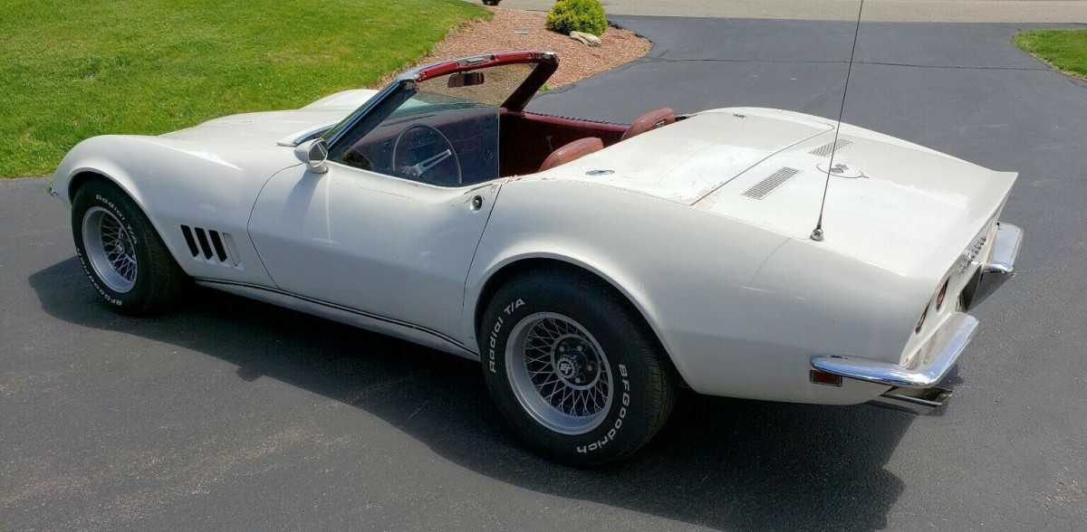 The big question here is: what engine is that? In 1968 you could order your Corvette with either a 327 or 427 V8. But there were multiple power levels ranging from 300 all the way up to 435 horsepower! The seller doesn’t say anything about the engine but those center bolt valve covers make me think it has been swapped out for a newer small block.