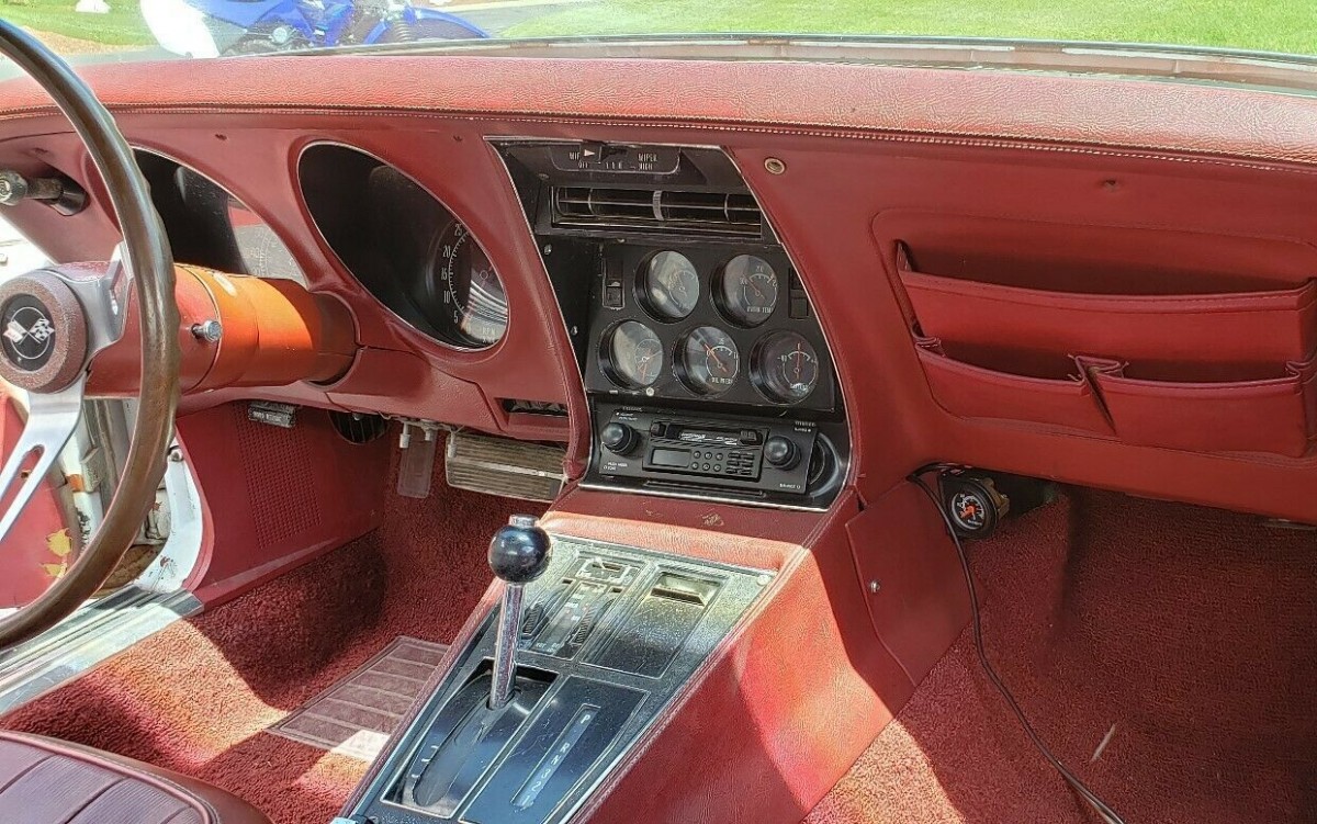 Faded dash and carpet looks to me like this one spent lots of time out in the sun!! Small block with an automatic isn’t the most desirable corvette!! You know the old saying though there’s a butt for every seat!!