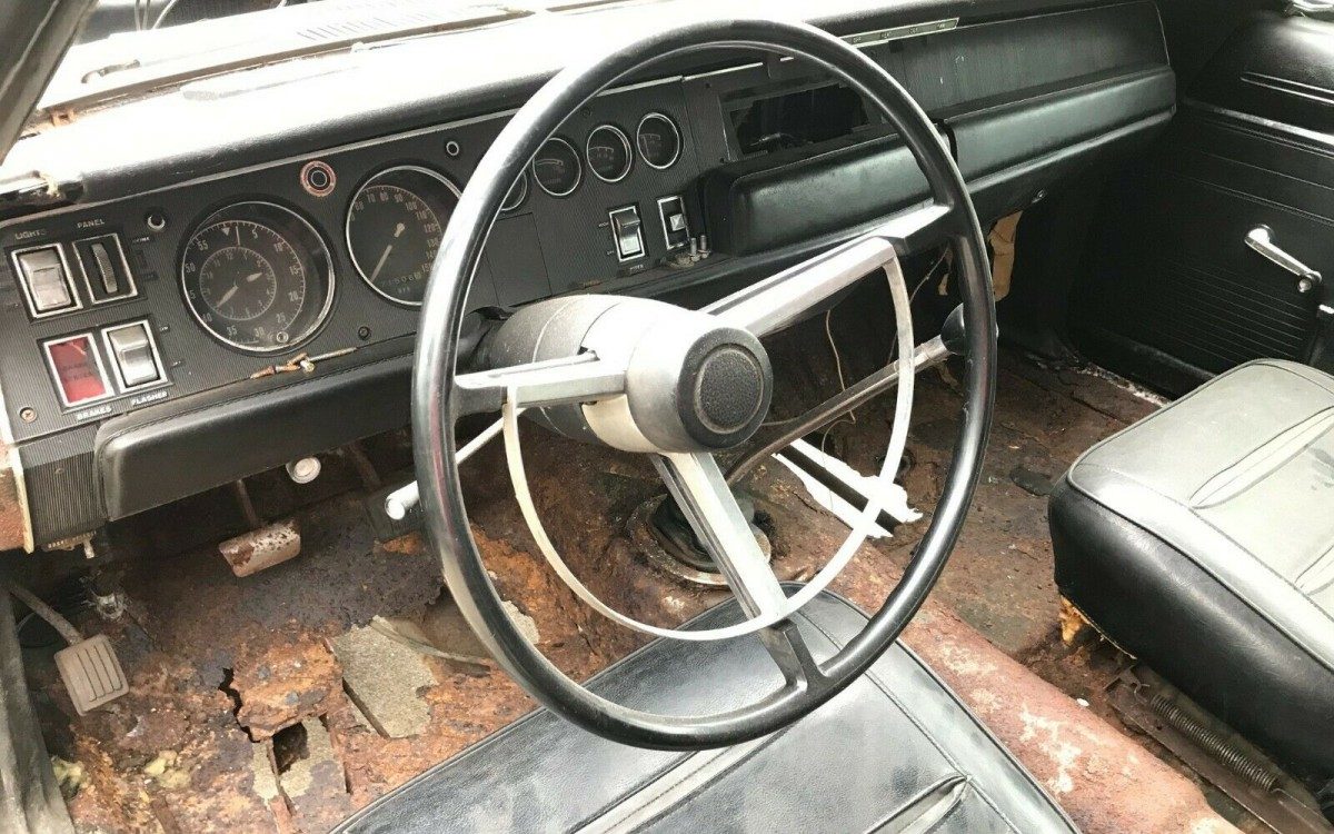 The engine is a 440 cubic inch V8 backed by a 4-speed transmission. While not as famed as the 426 Hemi, the 440 is a potent power plant and due to its lighter weight is actually preferred by a lot of Mopar enthusiasts. In fact, the stock 440 weighs nearly 100 lbs. less than the 426 which is good for 1/10 second in the 1/4 mile and gives you less weight over the front end. Unfortunately, there isn’t a lot of information in the ad regarding the condition of this one. Hopefully, it is able to be rebuilt to retain its numbers-matching status.