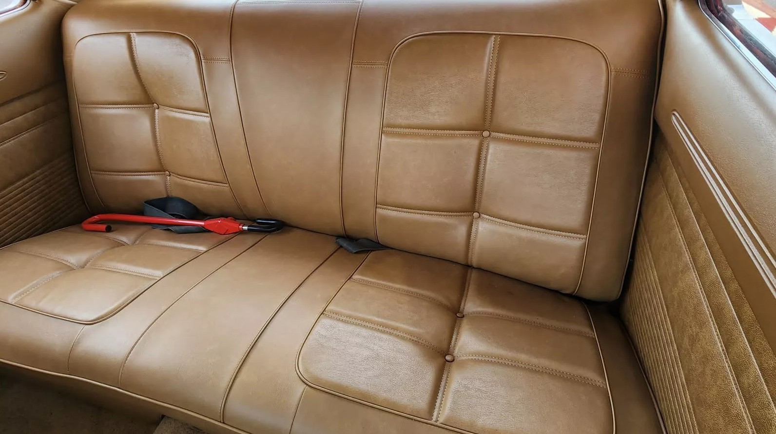 The seller supplies limited interior shots, with this one of the back seat being the best of the bunch. It reveals spotless Tan vinyl trim, with the condition unsurprising following the recent restoration. The front seats look equally impressive, and a close-up of the pad suggests it is crack-free. The interior features a console, and I believe that it might also house an aftermarket wheel and stereo.
