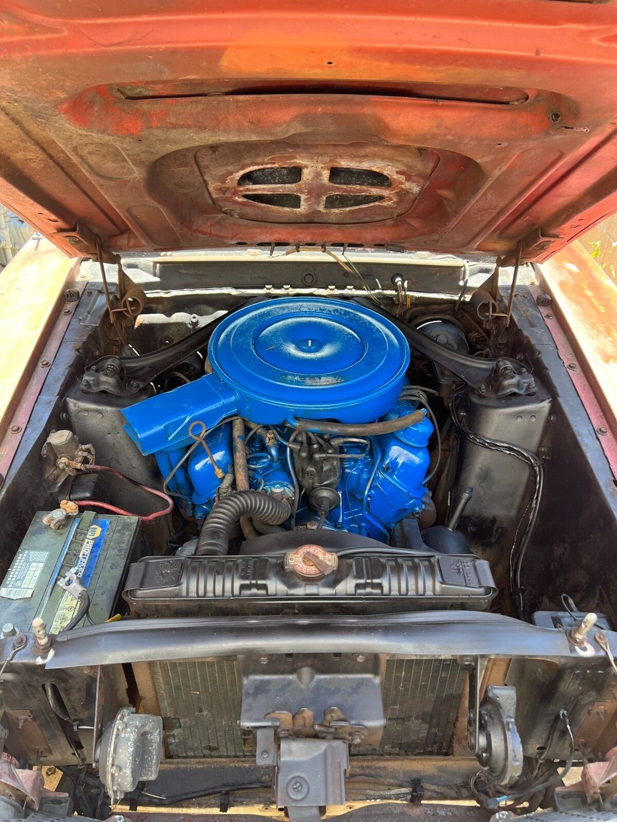 The rattle can painted engine looks out of.place given the overall state of the car … just sayin.