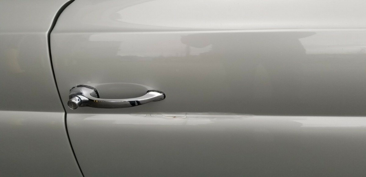 There are slight bits of rust forming on the front passenger side wheel well and undercarriage of the vehicle, as well as under the door handle. Frankly, the spot under the door handle invokes some concern, but the overall condition of this Benz seems to be fine.