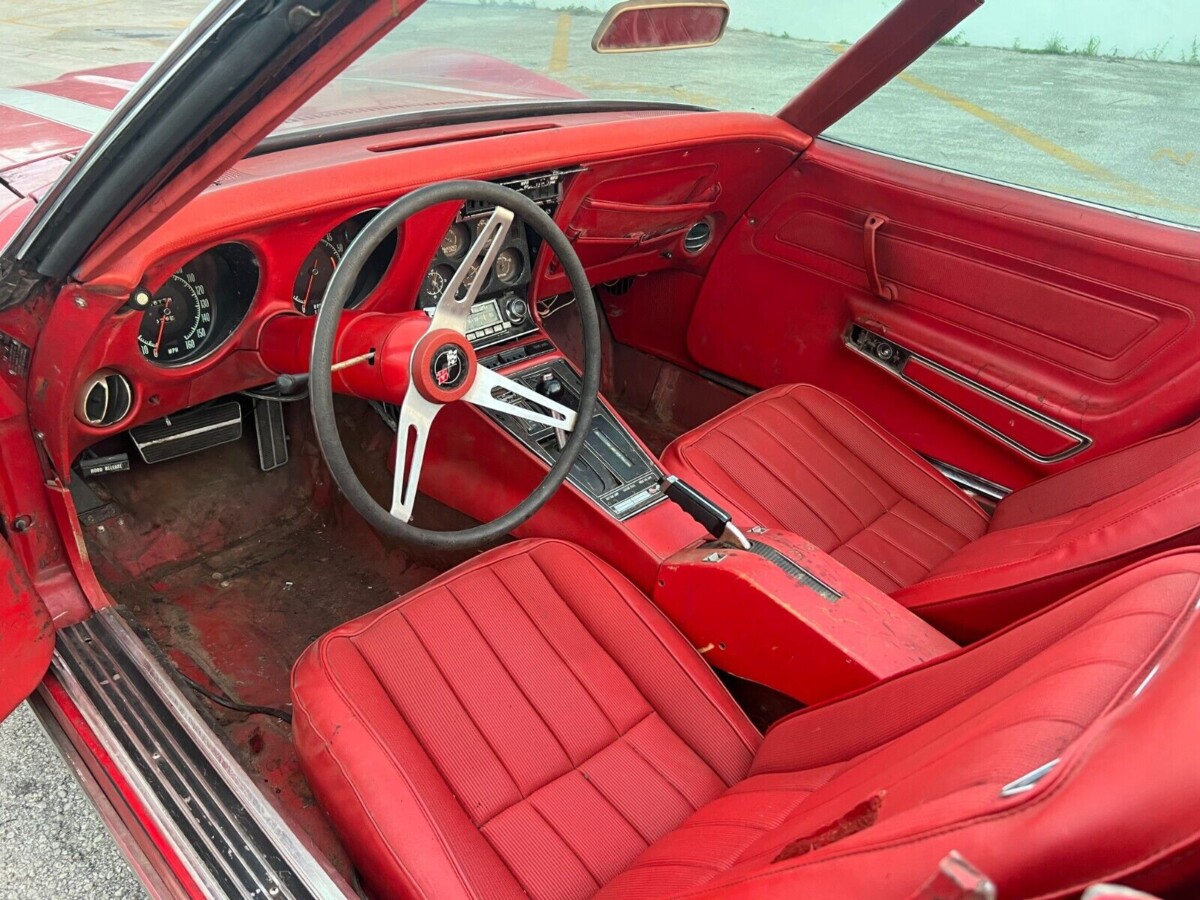 When I first looked at the supplied photos of this Corvette, I wondered whether its “nose-up” attitude might signal an empty engine bay. However, that is far from the case. This classic retains its numbers-matching ZQ3 version of the 350ci V8. This legendary small-block would have sent 270hp to the rear wheels via a three-speed Hydramatic transmission. The combination may have been the most sedate within the Corvette range, but it still allowed the car to cover the ¼ mile in 15.6 seconds. It may not have placed it in muscle car territory, but the original owner’s decision to order it with power assistance for the steering and brakes would have made it as relaxed in the city as it was on the open road. After years in storage, it’s no surprise this classic doesn’t run or drive. It rolls and steers for loading, but, like the rest of the car, it needs some mechanical TLC. If the engine turns freely, the bulletproof nature of the Chevrolet small-block means it may not take much work to coax it back to life.