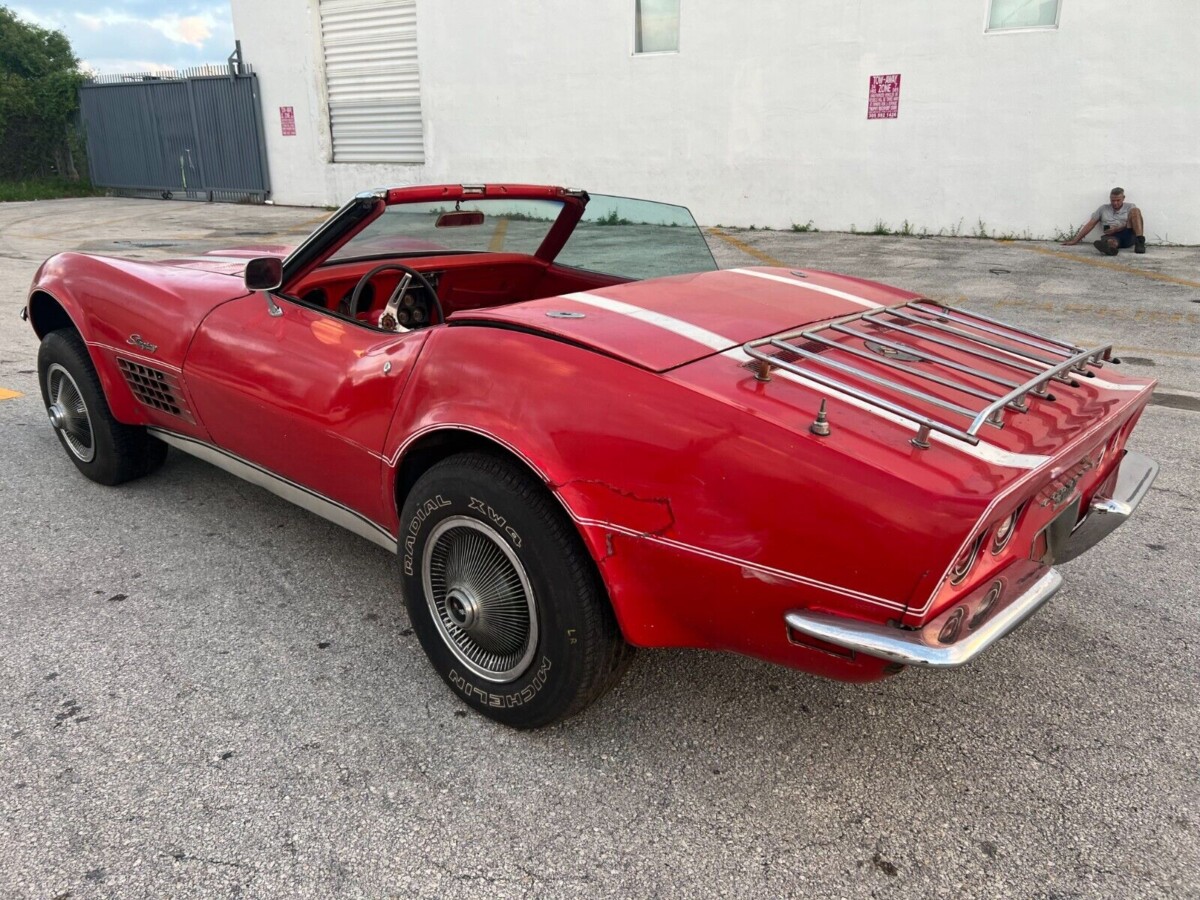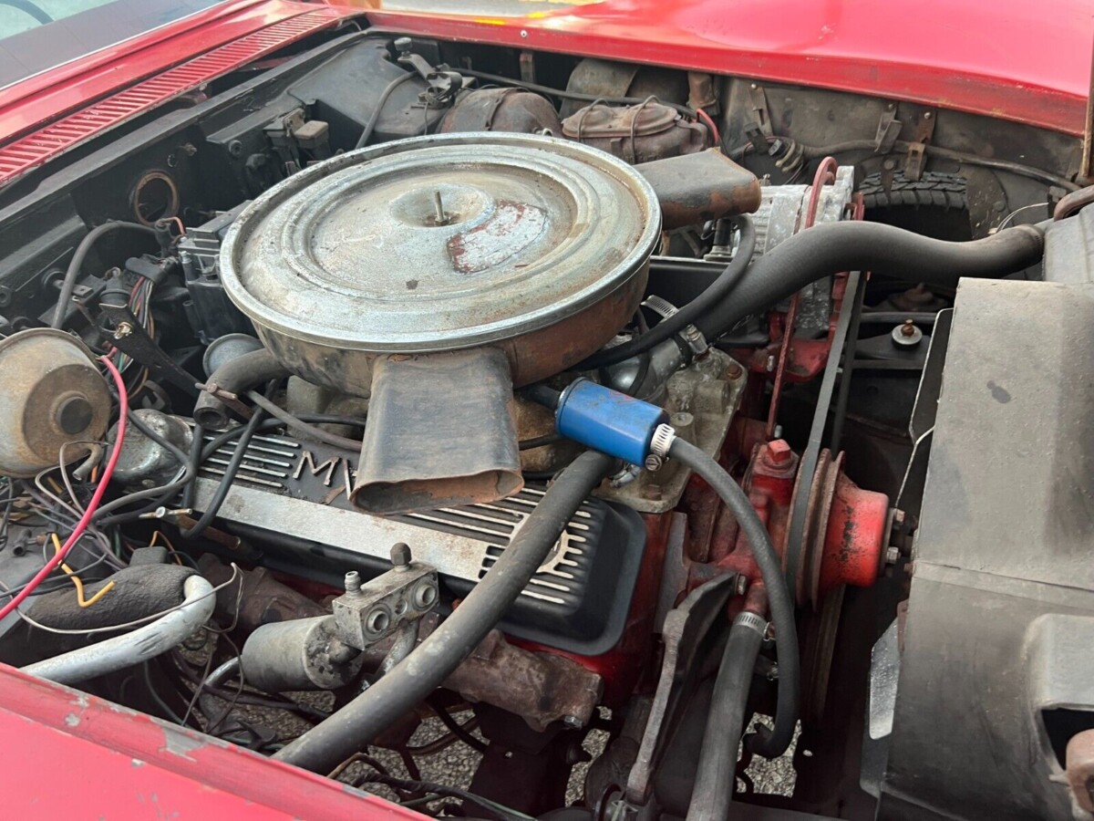 There’s a bit to unpack with this Corvette, which isn’t the first we’ve seen from this seller. It wears what appears to be its original Mille Miglia Red paint, although the White stripes are a later addition that I would gladly consign to the trash. The paint is as tired as you might expect from a vehicle that has sat for decades, and a fresh coat will make a huge difference. The fiberglass generally looks pretty reasonable, although the last photo in this article reveals what appears to be a substantial crack in the driver’s side rear quarter. If that’s the case, it may require the attention of a specialist to perform a high-quality repair. The condition of the White soft-top matches the rest of the exterior, meaning that the vinyl is past its “best before” date. Delving below the surface reveals the frame wearing nothing beyond mild surface corrosion. If it’s the same story with the birdcage, that makes this classic structurally sound. There are no missing trim pieces, and the glass looks excellent.