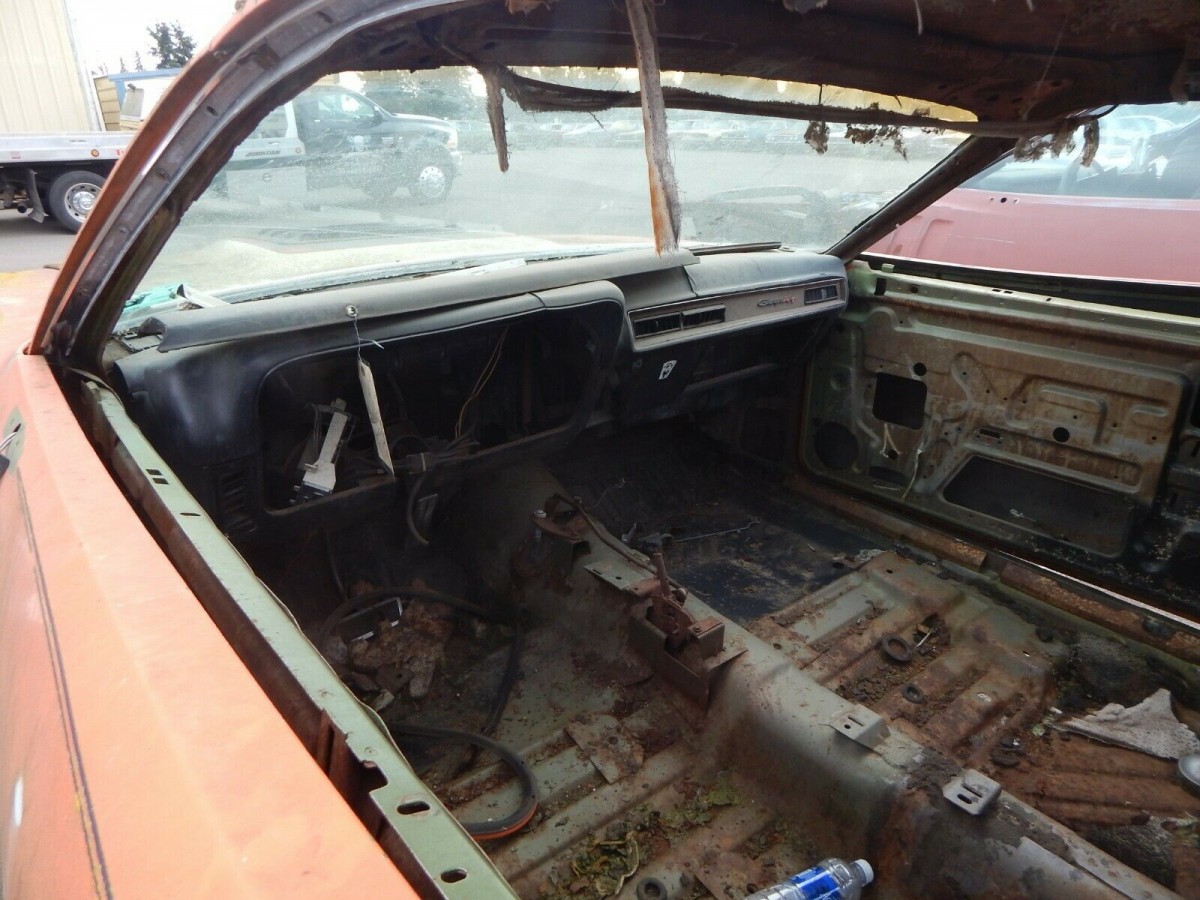 I’m sure the only reason the “numbers matching” engine is still in there is because its either seized or has a massive hole in the block somewhere , otherwise , why wasn’t that pulled with every other part that’s missing on this car ? I mean even things like the door catches ,wiper motor, hood hinges , and windshield trim are missing and not the engine ? The only reason the yellow hood is there is because someone drilled hood pins through it .