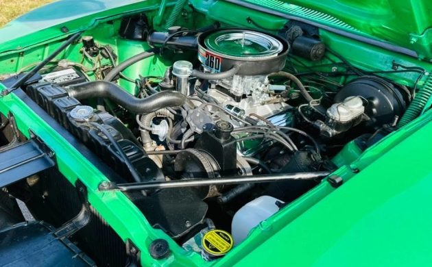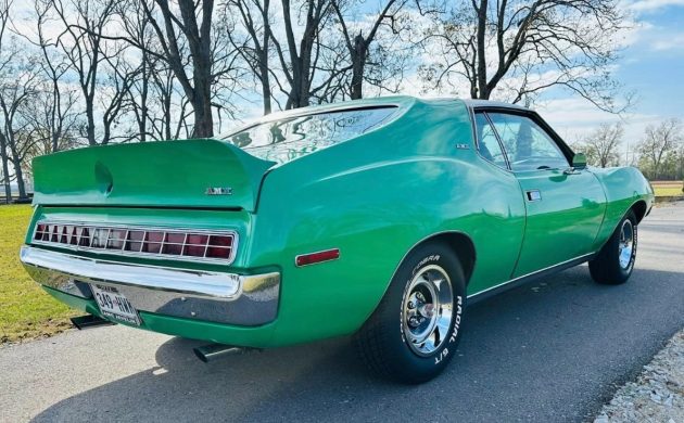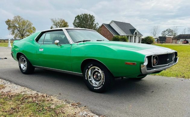 AMC unveiled its Second Generation Javelin in 1971, following an industry trend stating that “bigger is better.” The physical dimensions may have grown, but the latest model still looks stylish and quite elegant. This Javelin is the AMX variant, looking stunning in Jolly Green with White stripes and a matching vinyl top. The paint is in good condition, with no significant flaws or cosmetic imperfections. There are no bumps or bruises, and scrolling through the listing images confirms that this beauty is rust-free. The trim and glass are in good condition, while the seller stripped the original rally wheels and restored them, leaving them looking perfect. They also include a new AMC hood tach for the winning bidder to install.