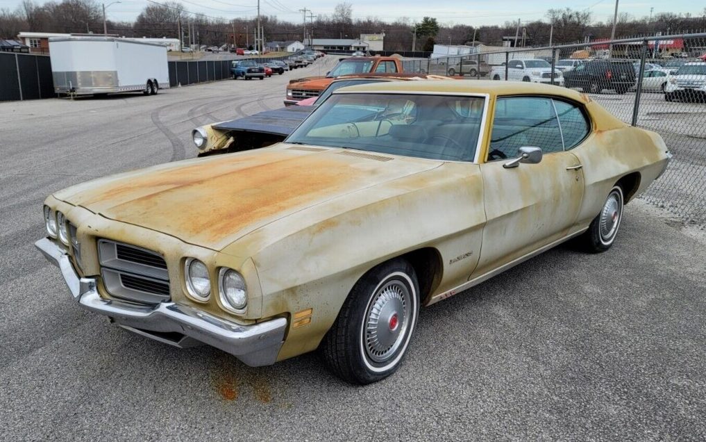 Nope, it’s not a GTO, just a 1972 Pontiac LeMans two-door hardtop, one of about 80K similar cars assembled in the final year of this very popular iteration of Pontiac’s A-body series. It has experienced lots of miles and is a bit worn looking but will likely have a rejuvenated future with a new owner. Rejuvenated how you ask? Let’s make an assessment. Located in Bowling Green, Kentucky, this Tin Indian is available, here on eBay for $2,550 with four bids tendered so far.