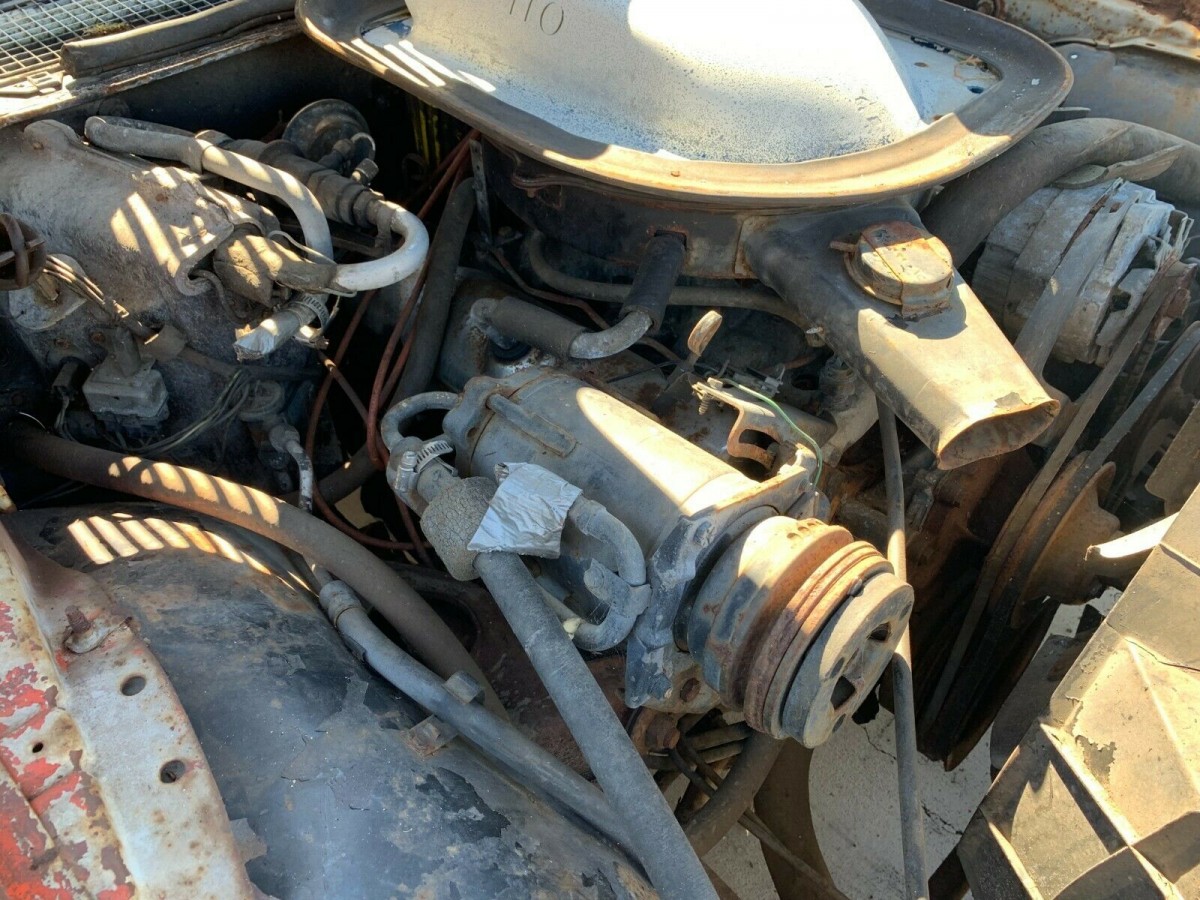 Relished or relisted…either way car is at $6600 with almost 4 days left in auction. I like the car, but at the current price it would be all I’d be willing to pay since the original engine is gone and will probably need everything touched to be back on the street again. $$$ White with blue stripes and blue interior is nice. Looks it may received a repaint sometime and was originally a blue car. Would have to break down the cowl tag info to find out.