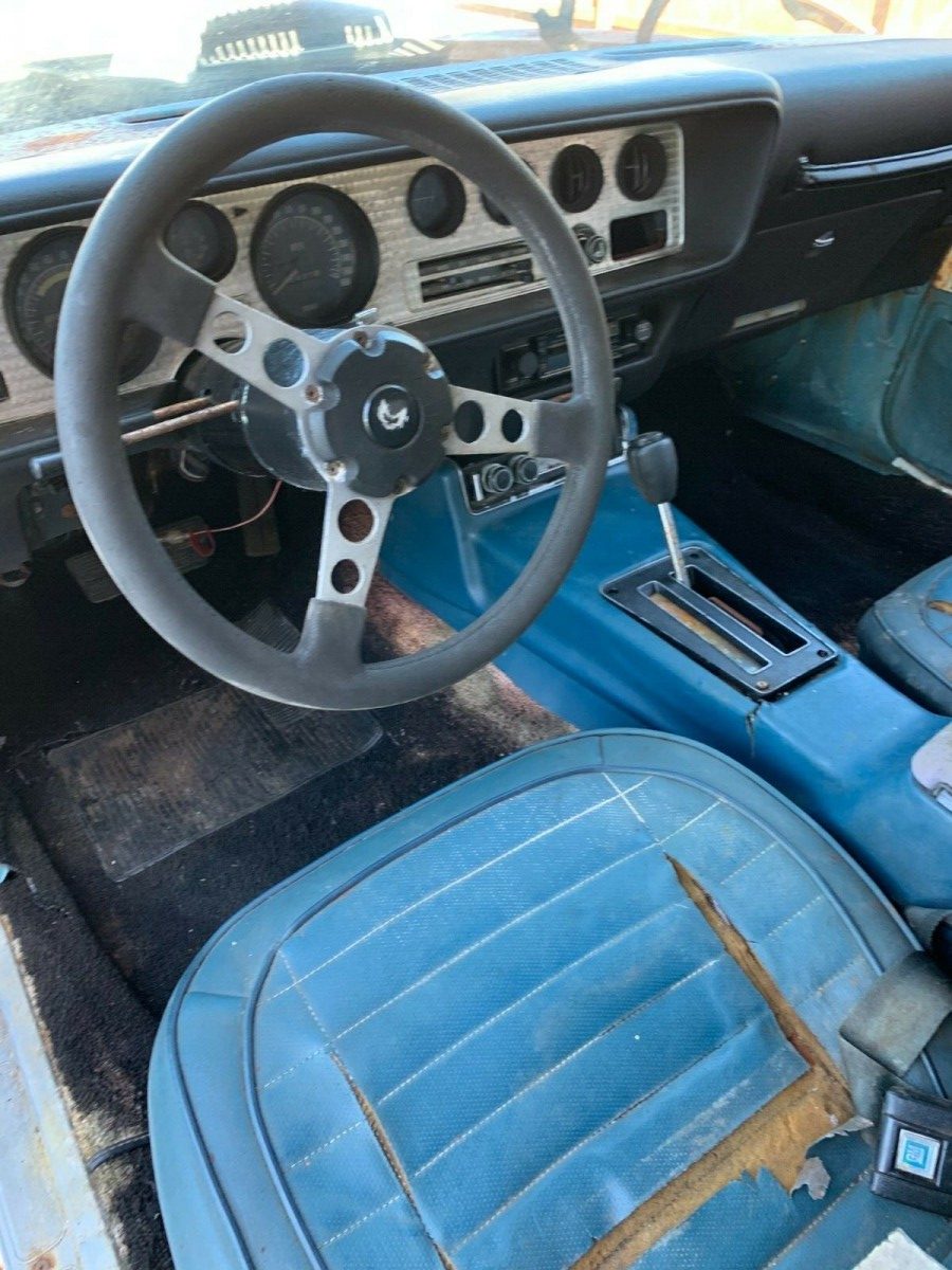 Good year Trans Am, too bad about the missing 455, not much interest here. Yes, lucerne blue with the white scoop would be tops,, but hey, this ones got blue spots showing up here and there, if that counts at all.