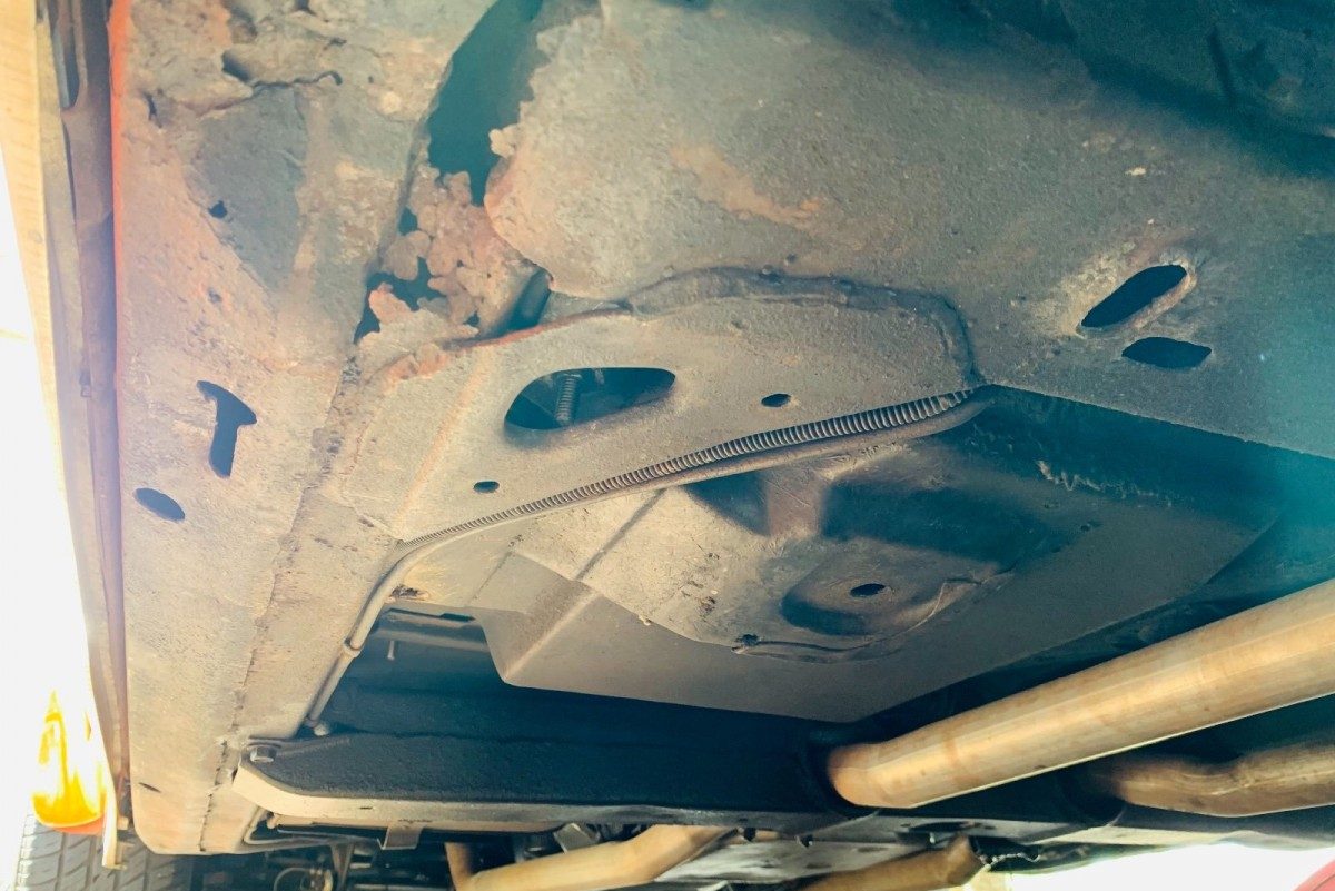 Kudos to the seller for the zillion pictures in the ad…lots of closeups… looks like the interior was dyed black…lots of orange over spray…the rust looks like it is just the tip of the iceberg…