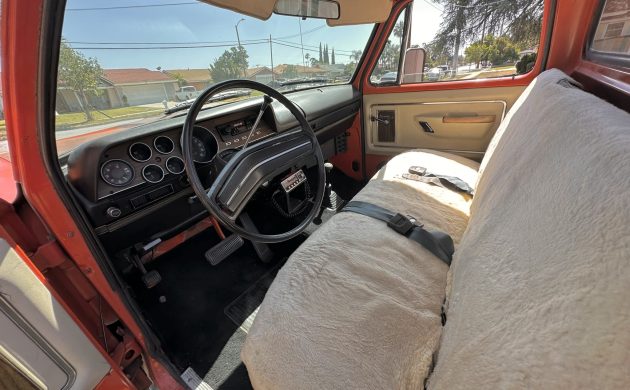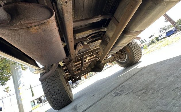 The undercarriage is California-clean with almost no rust, while one paint job in the original orange was applied sometime in the early ’90s. The seller is a little vague on the fuel system; the item description says that the gas in the tank was old, so it was hooked to an auxiliary fuel supply, after which it started right up. That implies that it’s still running on that auxiliary supply, but I don’t see any evidence of that in the pictures (but perhaps I missed them?). Assume it needs a little fuel system work.