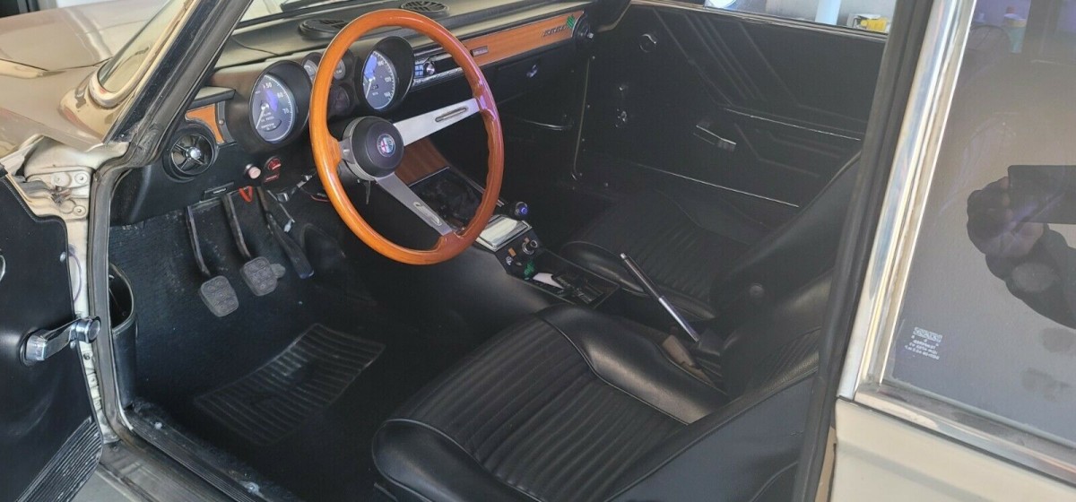The old-school California blue plates are always a good sign of a car’s longevity in California, and the seller indicates it’s a lifelong resident. The bodywork does look largely good, although there are some signs of bodywork on the rear quarter and over the rear passenger wheel well. Chrome bumpers look to be in excellent shape, and the same goes for the original steel wheels. Tinted windows may be tawdry by most standards but they appear to have played a role in keeping the interior in very good condition; more on that shortly. The color is a nice change of pace from the usual reds and blacks we see Alfas of this vintage in. It reminds me of the Sahara paint job that BMW 2002s came in.