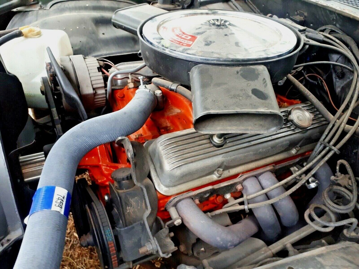 The interior is dirty but looks to be in good condition. There are aftermarket gauges added under the dash and a funky homemade console resides between the seals. The seller states that this car has been sitting since 2006 when it was moved from Florida to Montana. At that time, a new fuel tank, belts and exhaust were installed. The seller has put about 500 miles on it in the last 14 years. The mandatory aluminum bumpers added to the 1974 Camaro added 7 inches to the length of the car.
