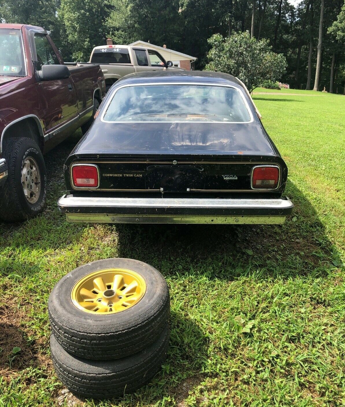 To get the engine running again, it will require a new water pump and gas tank (both are missing; sounds like this was already turning into a parts car). But beyond the MIA pieces, it’s not known what internal issues the drivetrain may have. This includes the 4-speed manual transmission. The seller has some extra parts for the car including a pair of Cosworth Vega wheels. The Cosworth Vega has greater resale value potential than the standard Vega: $18,000 vs. $3,000 with both numbers on the high end. Would you try to restore this car or use it as a donor for another Cosworth Vega project?