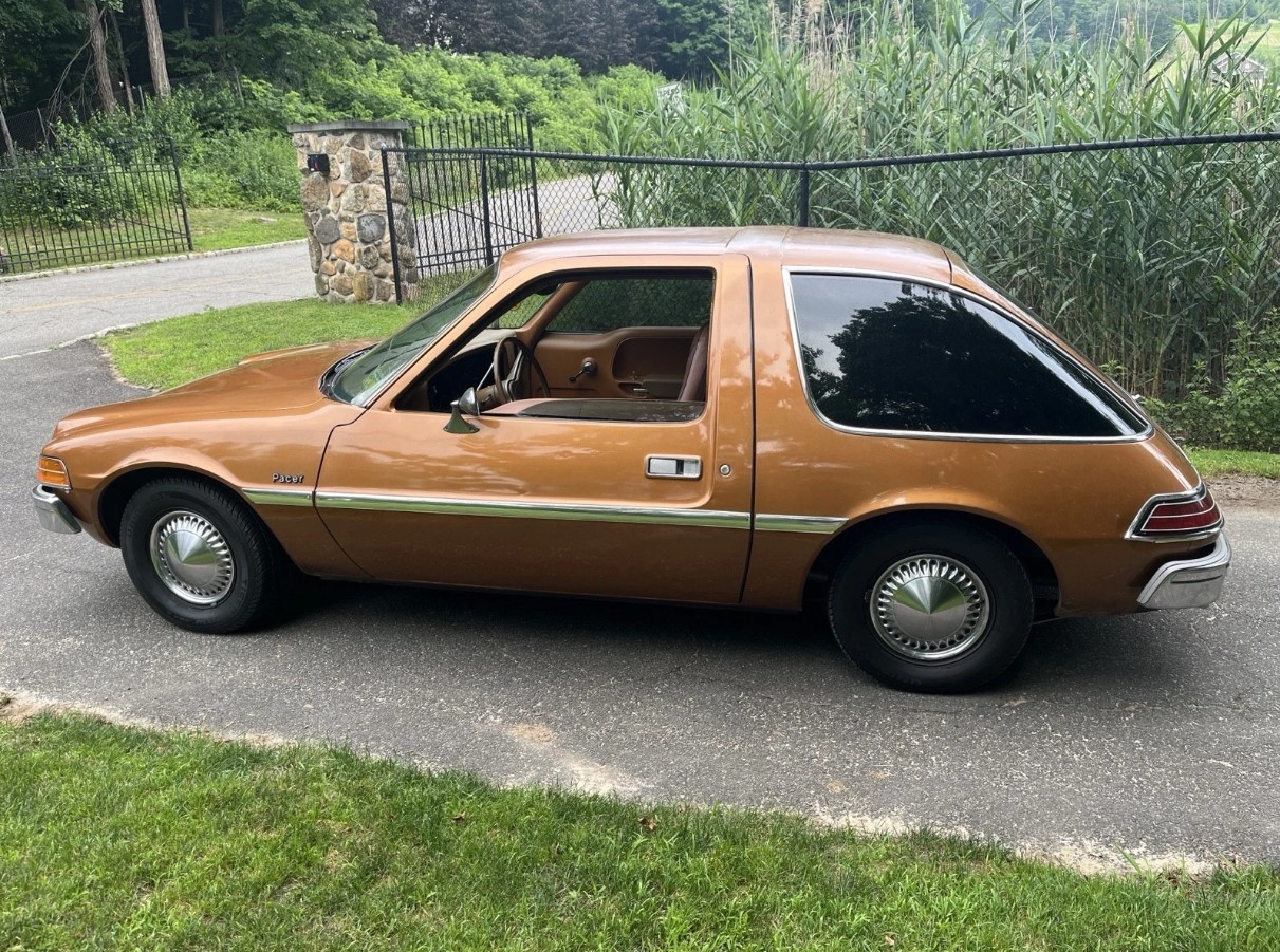 Aw, come on folks, if a Pacer doesn’t bring a smile and ensuing comments, you better whip out the BP monitor. Party on, whoo, whoo, whoo,, While AMC had become known for unusual vehicles, I think we can all agree, the Pacer topped them all. The 70s were all about throwing whatever the designers threw out there, to the public to see what stuck. There were plenty of unusual cars with features all their own, the Pacer seemed to say, “yeah, well top this”. It was a time when we 1st saw foreign jobs and the features they had, front drive, double overhead what now? Driven by rubber belts? Good heavens, the Pacer was for those that wanted none of that. The Gremlin was more of a novelty car, the Pacer was actually a very nice car. I knew people that had Pacers, and would have surely bought another, if any could be found. The people who wanted a Pacer, were probably happy to see the 6, ( a $99 option over the 4cyl.) and rotaries left a bad taste in many with Mazdas failure,and with a cost of around $3500, it was less than most cars at the time. A ’76 Granada or Nova, for example, was almost $4grand. Sales were strong( cough) the 1st year, with over 146,000 sold, but that was the problem, see, they were such good cars, sales declined to less than 35,000/year, and by the early 80s, when the original ones were rusted, another couldn’t be bought. Parts are all off the shelf items, most still available ( with an inch of dust) and 164 viewers, and up to $3500, ironically it’s original price and while interest is limited, maybe we’ve turned a corner here. Someone will be mighty happy, just like in 1976, it was a fabulous time. Disco,( meh) Jimmy Carter,( he was a great guy, just bad timing) Apple computers, and yes, the AMC Pacer.
