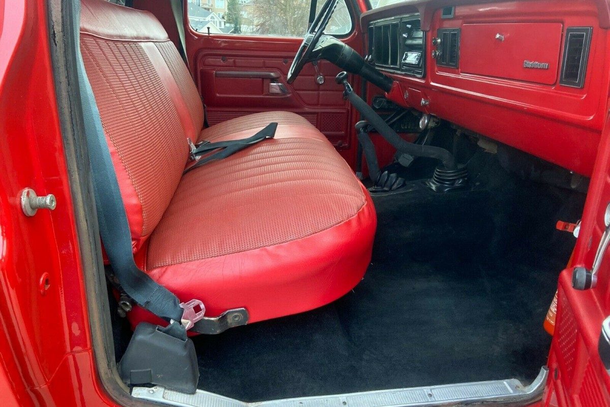 This F250 is no motoring chameleon. If potential buyers are searching for a classic where they will blend into the background, this won’t be it. However, it stands out for all of the right reasons. The panels appear to be laser straight, while the Bright Red paint holds a beautiful depth of shine. The owner has made a wise move by fitting a hood protector because the hood’s leading edge can be prone to stone chips and other damage. The chrome is in excellent condition, as is the glass. The aftermarket wheels are wrapped in BF Goodrich tires, and these are nearly new.