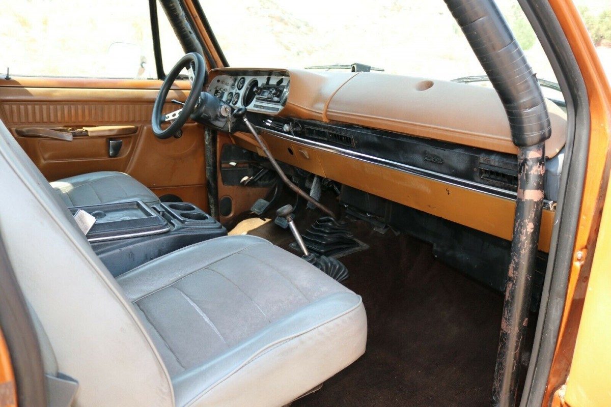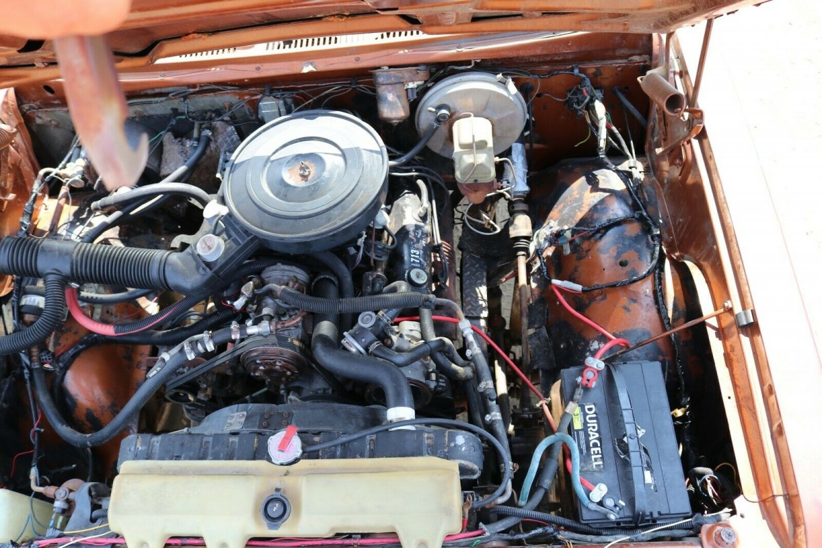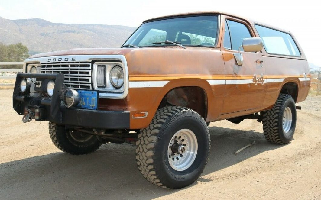 The interior looks nice and the seller added a full roll cage to the interior of the vehicle. The dash has been upgraded with Autometer gauges. The ad states that the radio, electrics work well but the winch and halogen lights need to be hooked up. The Ram Charger has a full-size spare and runs on Pro Comp 15×8 wheels. The engine has a new battery, spark plugs, wires, distributor cap, and starter.